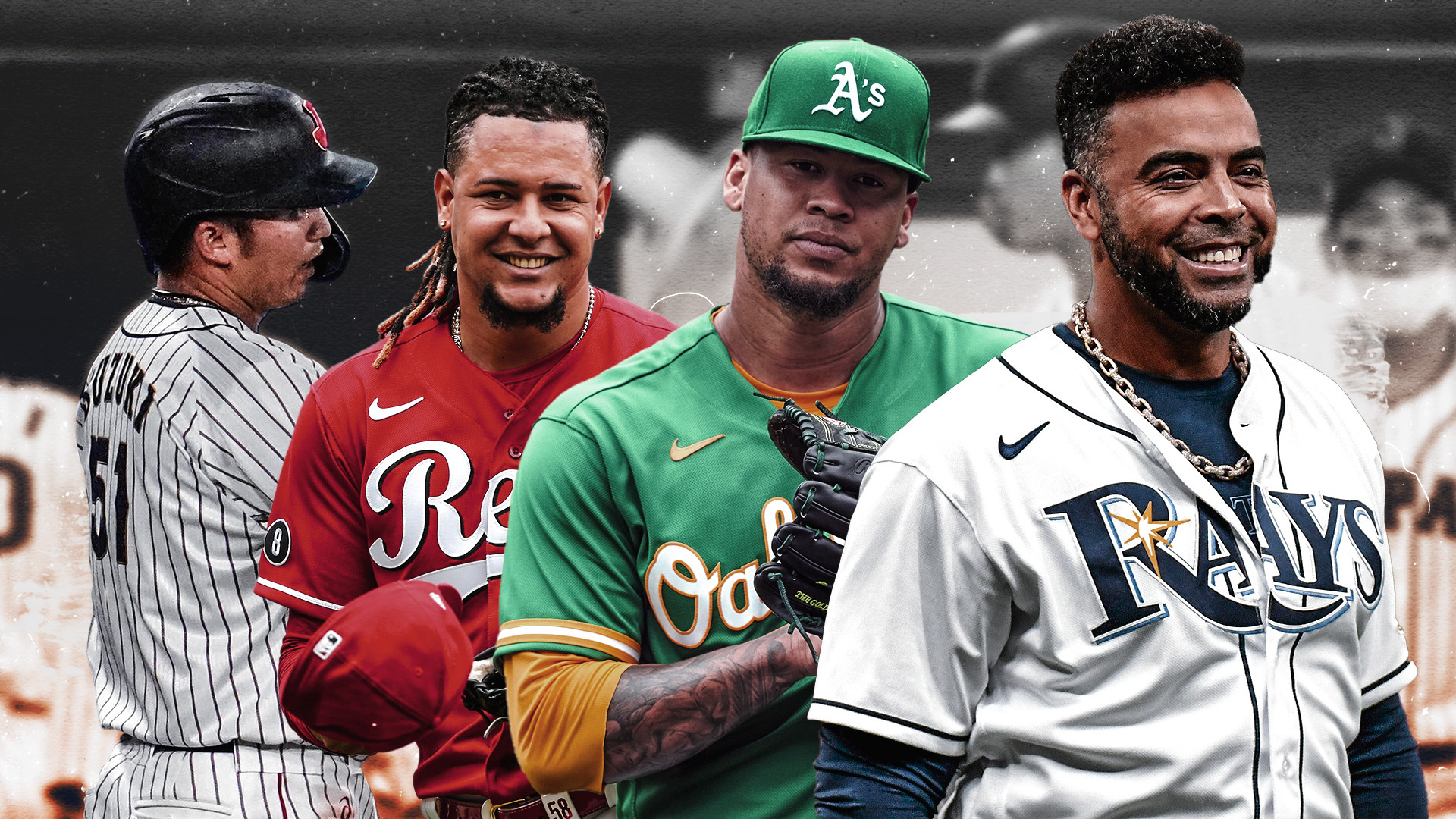 Seiya Suzuki, Luis Castillo, Frankie Montas, and Nelson Cruz / USA TODAY Sports/SNY Treated Image