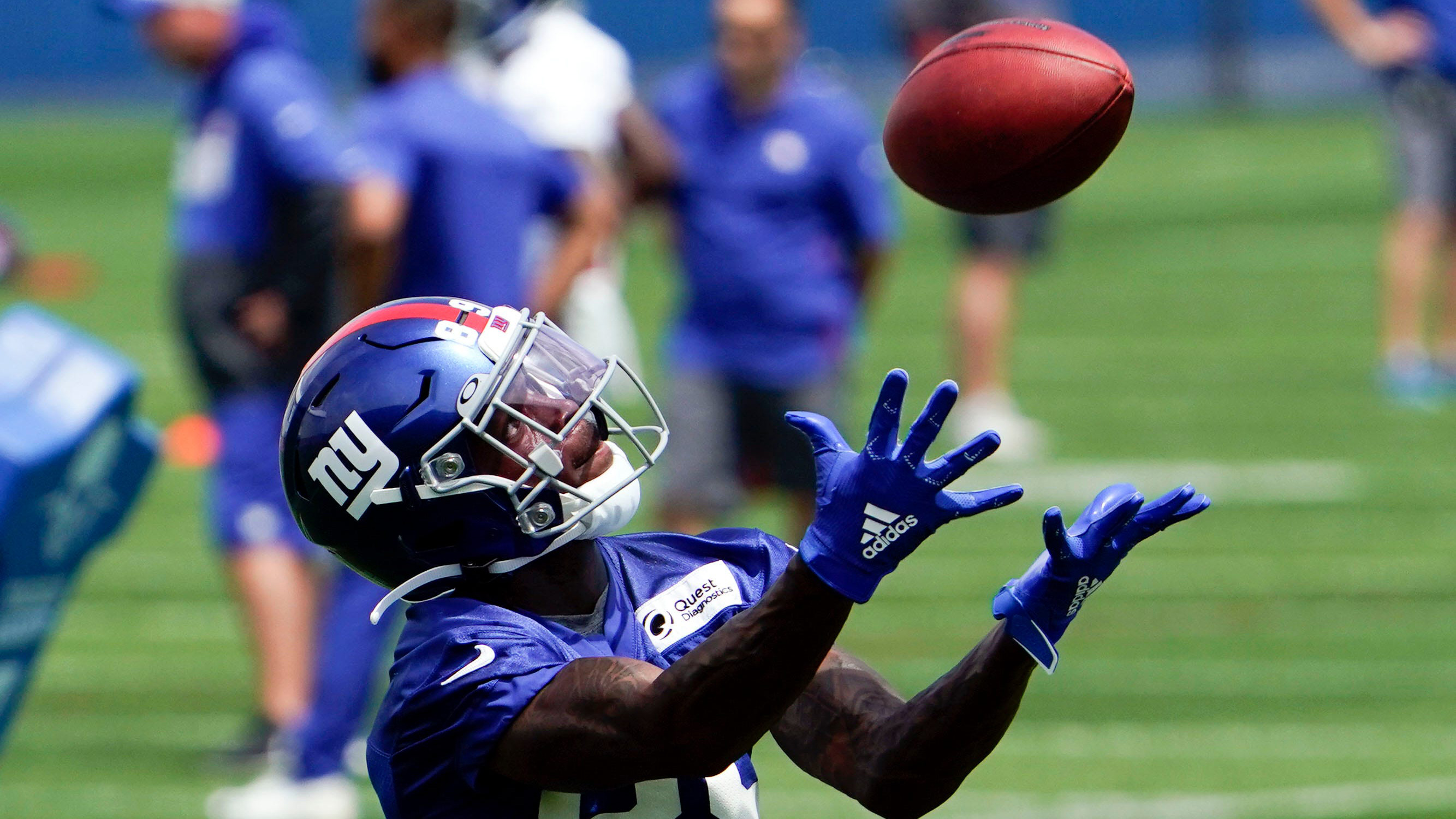 New York Giants rookie wide receiver Kadarius Toney catches the ball on the first day of Giants minicamp at Quest Diagnostics Training Center on Tuesday, June 8, 2021, in East Rutherford / Danielle Parhizkaran/NorthJersey.com-Imagn Content Services, LLC