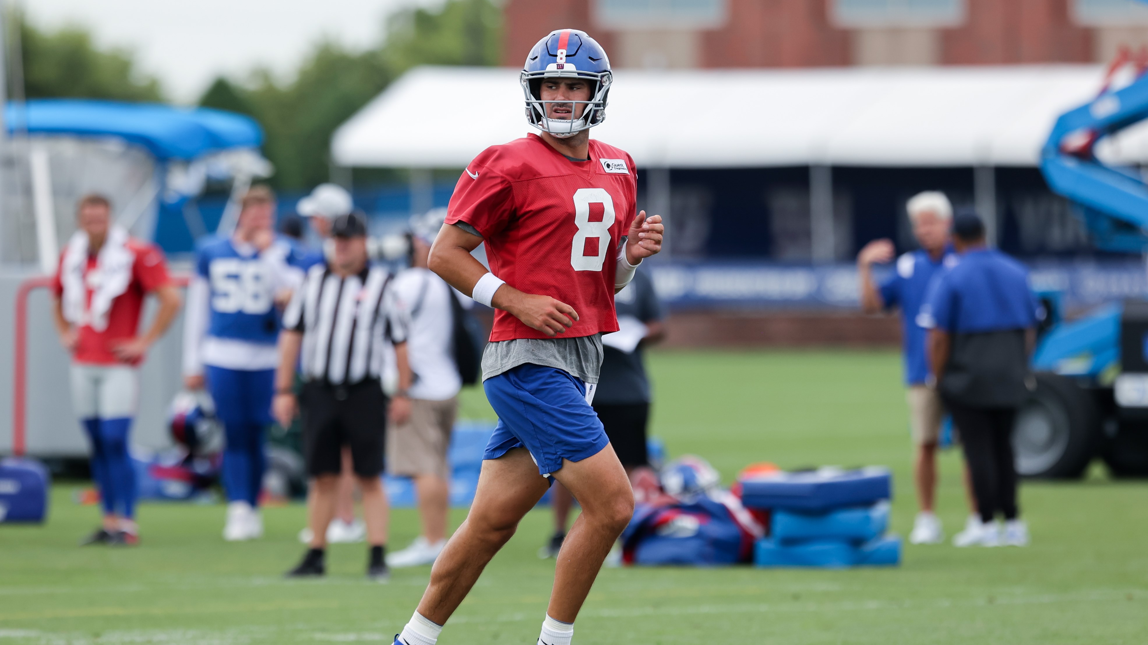 5 things to watch in Giants' 2022 NFL preseason opener vs. PatriotsDaniel Jones' grip on the new offense is a hot topic, while Evan Neal and Kayvon Thibodeaux get their first taste of an NFL game day8/11/2022, 2:06 PMScott ThompsonEditorial ProducerNew York Giants wide receiver Wan'Dale Robinson (17) participates in a drill during minicamp at MetLife Stadium. / John Jones - USA TODAY Sports