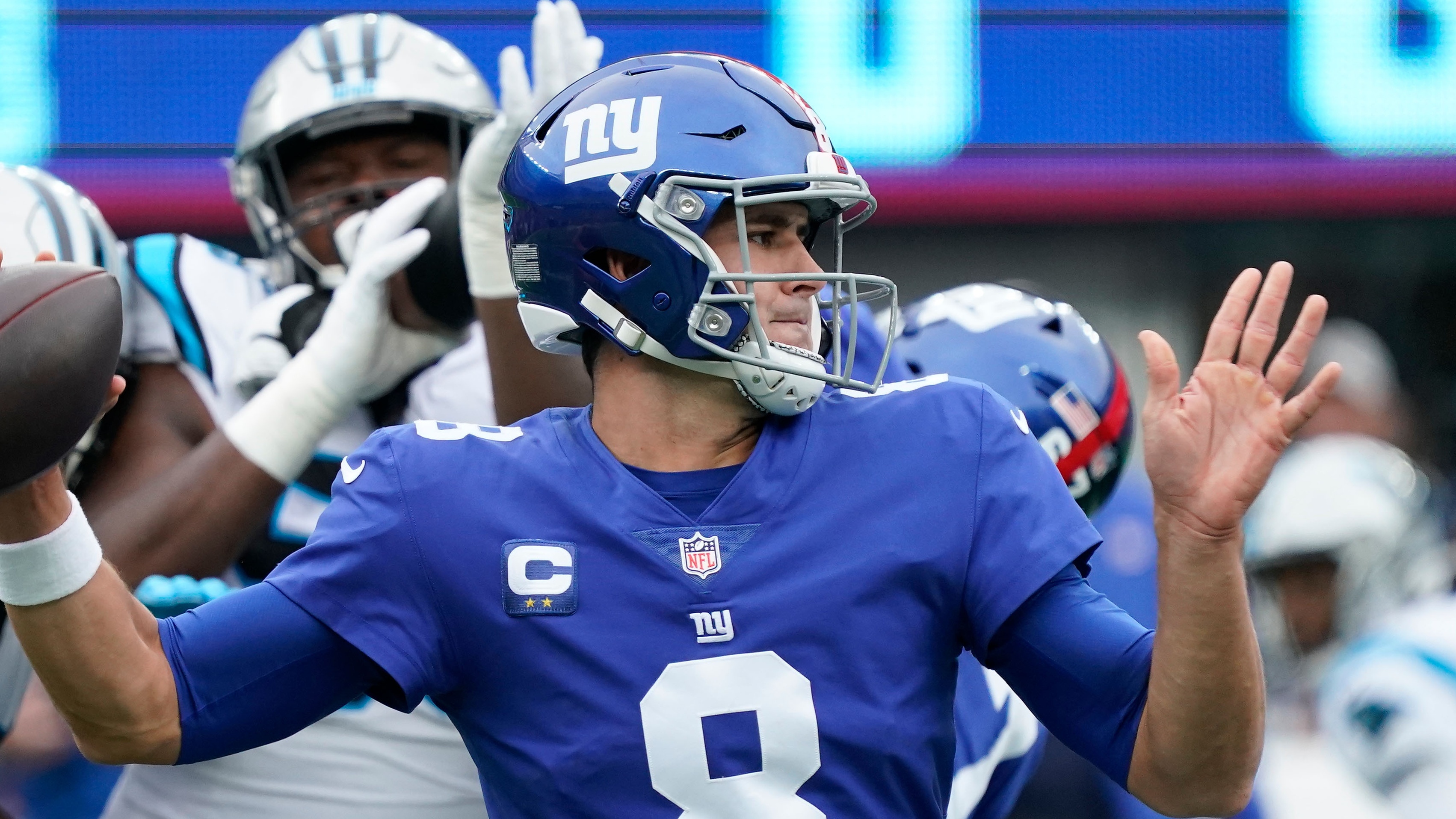 Sep 11, 2022; Charlotte, North Carolina, USA; Carolina Panthers running back Christian McCaffrey (22) breaks into open field during the second half against the Cleveland Browns at Bank of America Stadium. Mandatory Credit: Jim Dedmon-USA TODAY Sports / Sep 11, 2022; Charlotte, North Carolina, USA; Carolina Panthers running back Christian McCaffrey (22) breaks into open field during the second half against the Cleveland Browns at Bank of America Stadium. Mandatory Credit: Jim Dedmon-USA TODAY Sports