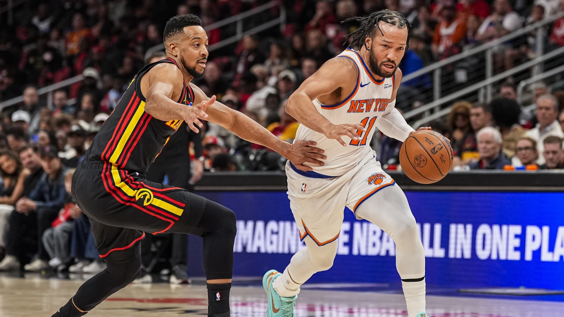 Knicks vs. Hawks: 5 things to watch in first round of 2026 NBA playoffsKarl-Anthony Towns size and New York's perimeter defense will be difference makers4/15/2026, 12:56 PMRafael CantonNBA Freelance WriterApr 6, 2026; Atlanta, Georgia, USA; New York Knicks guard Jalen Brunson (11) dribbles against Atlanta Hawks guard Dyson Daniels (5) during the first half at State Farm Arena. / Dale Zanine-Imagn Images