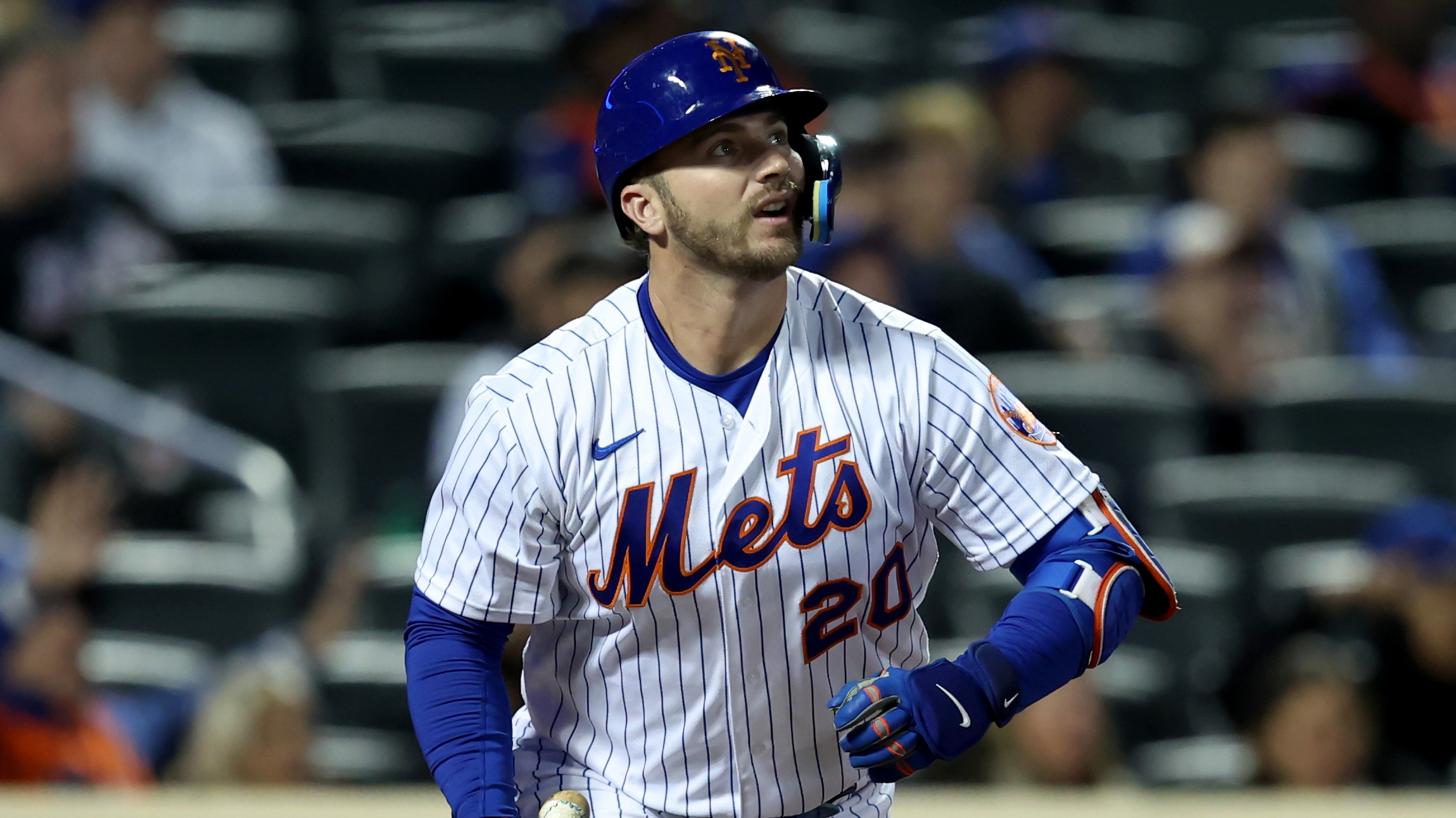 May 8, 2022; Philadelphia, Pennsylvania, USA; New York Mets starting pitcher Max Scherzer (21) gets a new baseball after allowing home run to Philadelphia Phillies right fielder Bryce Harper (3) (not pictured) during the first inning at Citizens Bank Park. / Eric Hartline-USA TODAY Sports