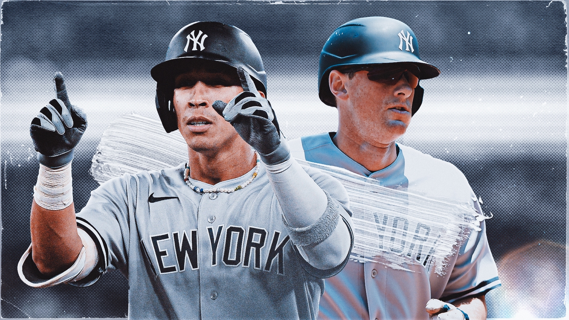 Jun 23, 2022; Bronx, New York, USA; New York Yankees left fielder Aaron Hicks (31) celebrates after the Yankees defeat the Houston Astros 7-6 at Yankee Stadium. / Wendell Cruz-USA TODAY Sports