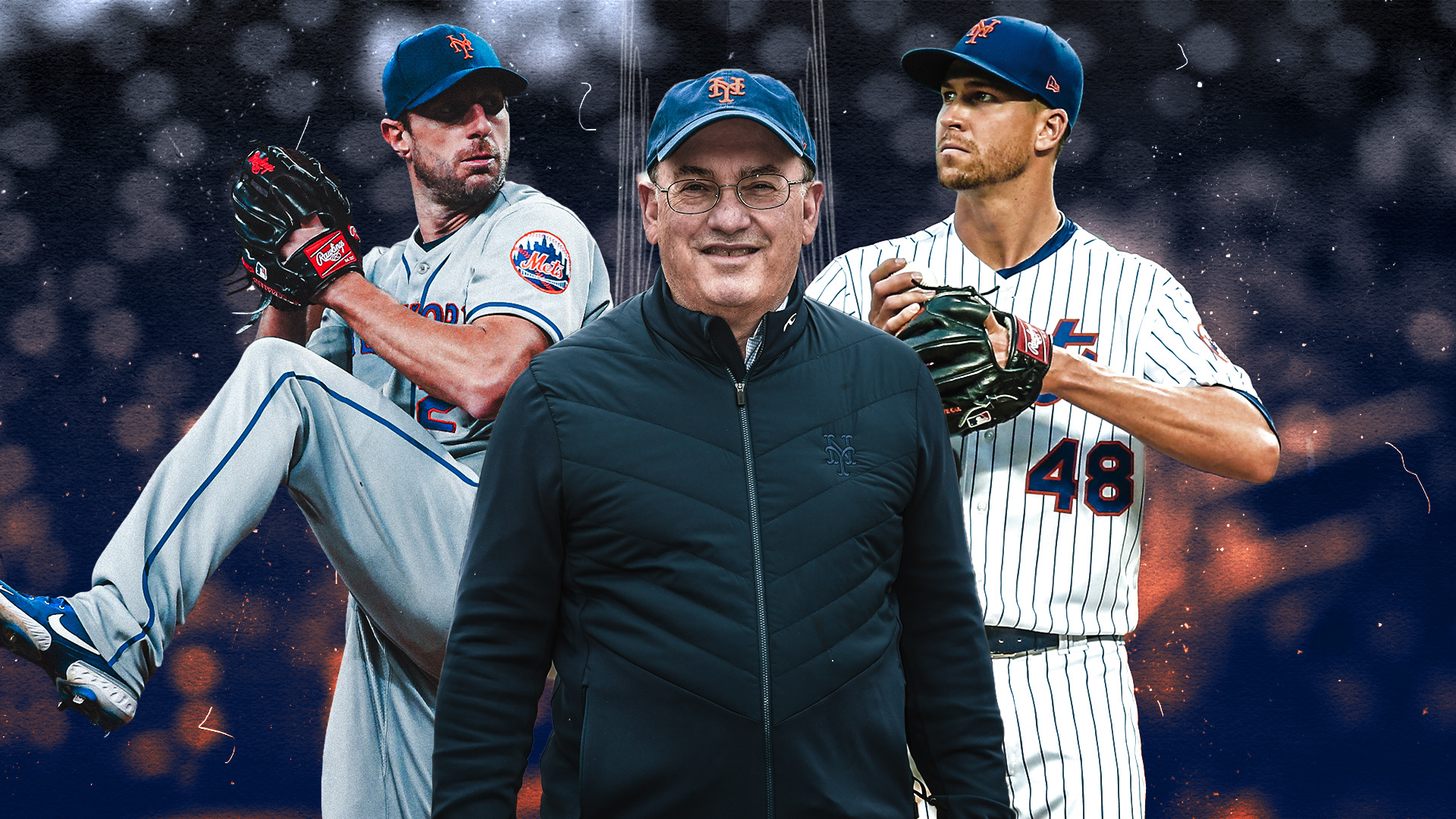 Max Scherzer, Steve Cohen and Jacob deGrom / USA TODAY Sports/SNY Treated Image