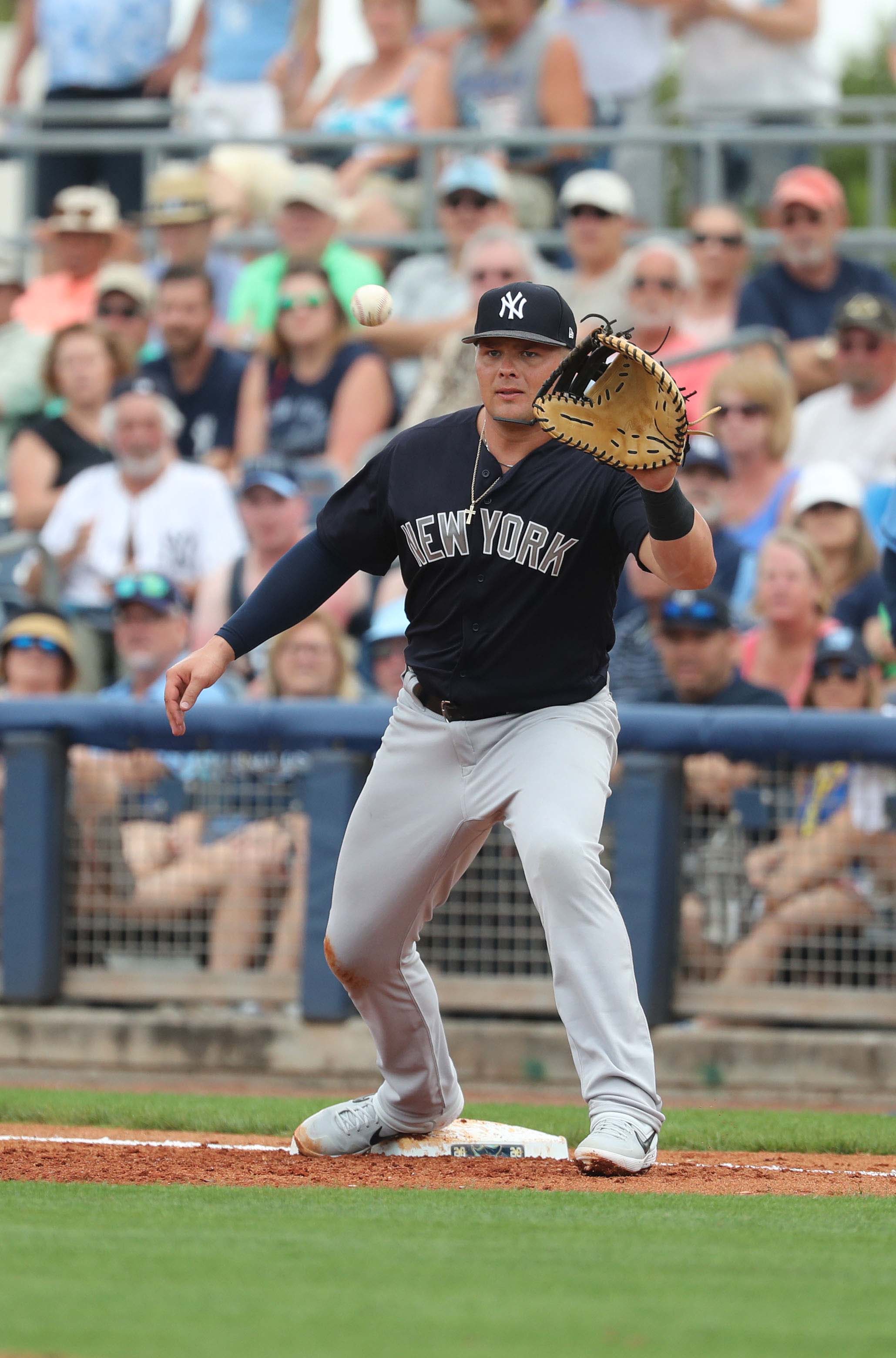 Aaron Boone 'not at that point yet' to pick favorite for Yankees 1B roleLuke Voit, Greg Bird both thriving in spring training3/8/2019, 2:32 PMMatt EisenbergNew York Yankees first baseman Luke Voit catches the ball for an out during the second inning against the Tampa Bay Rays at Charlotte Sports Park. / Kim Klement/USA TODAY Sports