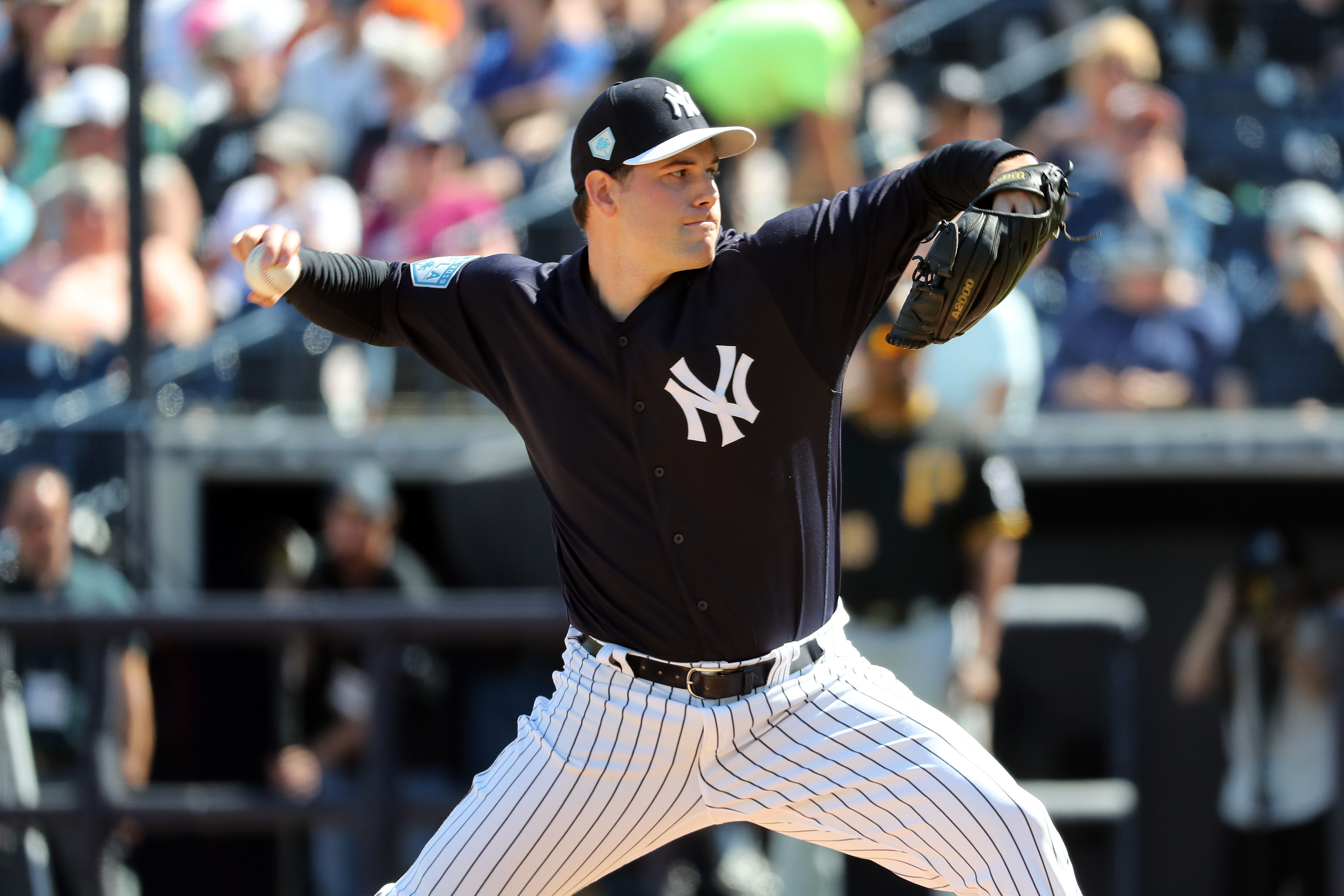 Feb 28, 2019; Tampa, FL, USA; New York Yankees pitcher Adam Ottavino (0) throws a pitch during the third inning against the Pittsburgh Pirates at George M. Steinbrenner Field. Mandatory Credit: Kim Klement-USA TODAY Sports / Kim Klement