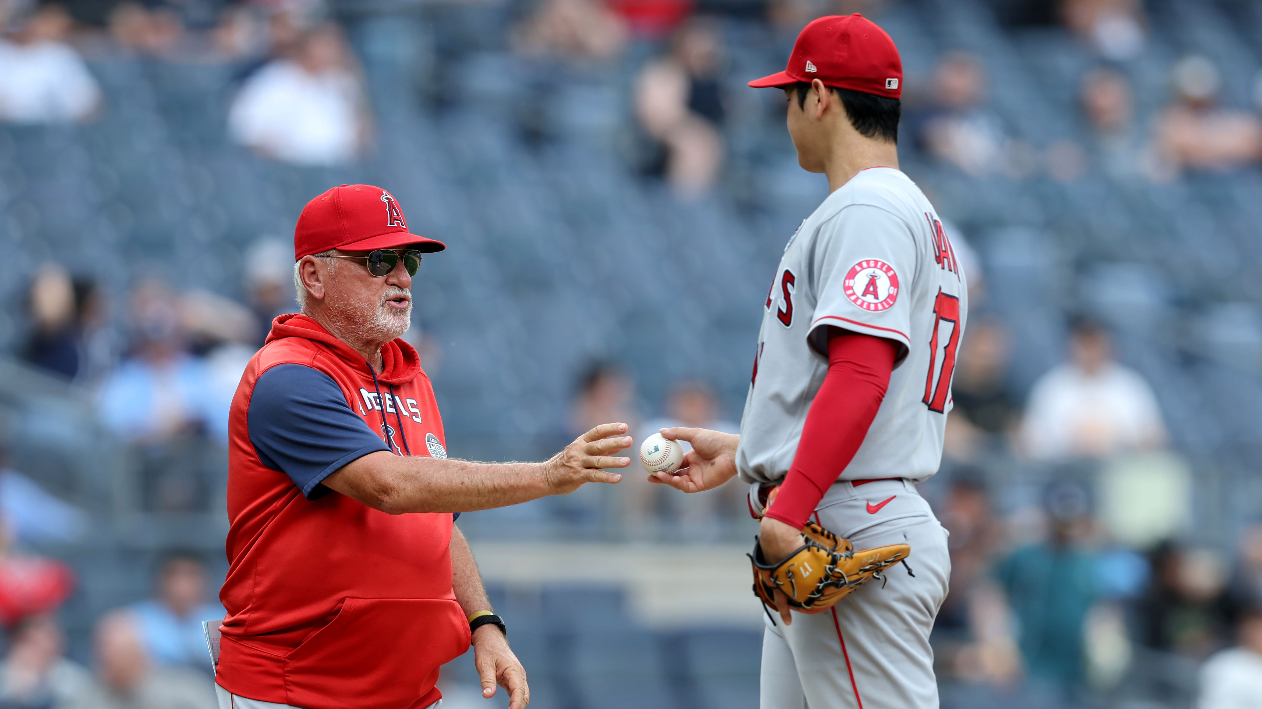 Angels' Joe Maddon believes Shohei Ohtani was tipping pitches, calls Yankees 'really good at reading pitchers'"I'm not accusing anybody of anything, except that they're good at it'6/2/2022, 10:40 PMAlex SmithEditorial ProducerJun 2, 2022; Bronx, New York, USA; Los Angeles Angels manager Joe Maddon (70) takes the ball from starting pitcher Shohei Ohtani (17) during the fourth inning against the New York Yankees at Yankee Stadium. / Brad Penner-USA TODAY Sports