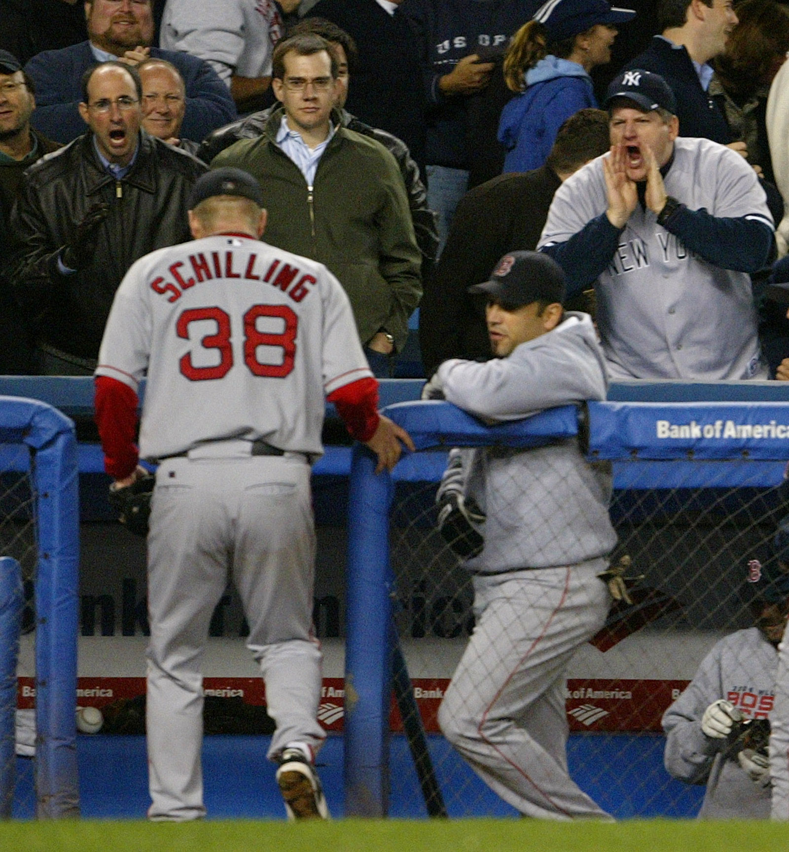 A day before starting Game 1 of the 2004 ALCS, Curt Schilling told reporters, "I'm not sure of any scenario more enjoyable than making 55,000 people from New York shut up," Yankees fans roared during the game, and Schilling, usually known for his postseason prowess, allowed six runs in three innings. Ouch. / AP
