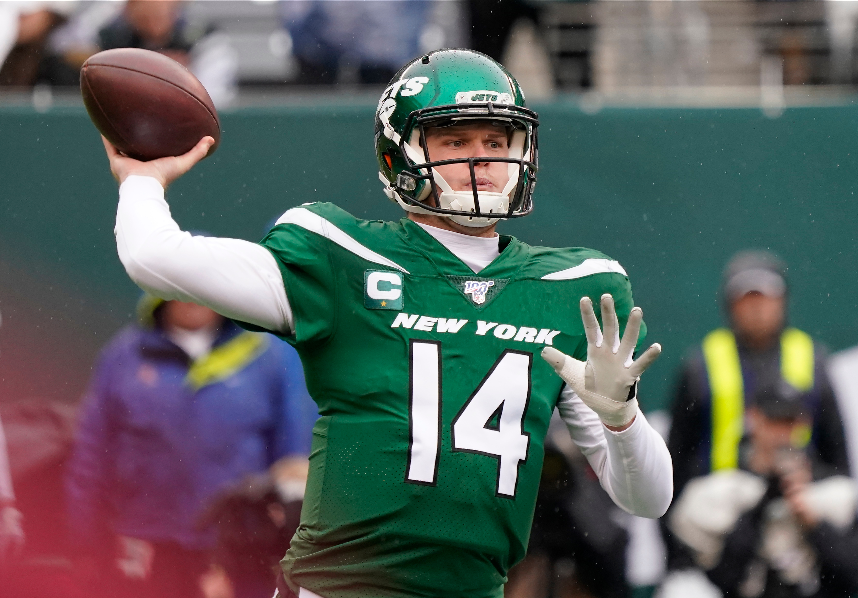 Nov 24, 2019; East Rutherford, NJ, USA; New York Jets quarterback Sam Darnold (14) throws in the first half against the Oakland Raiders at MetLife Stadium. Mandatory Credit: Robert Deutsch-USA TODAY Sportsundefined