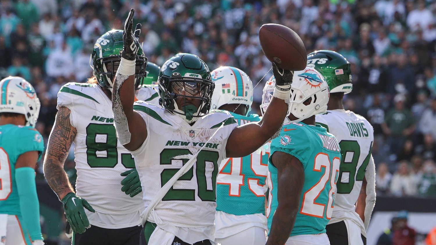 Breece Hall's dual-threat ability key to Jets' win over DolphinsThe rookie had almost 200 yards combined10/9/2022, 10:47 PMPhillip MartinezEditorial Producer