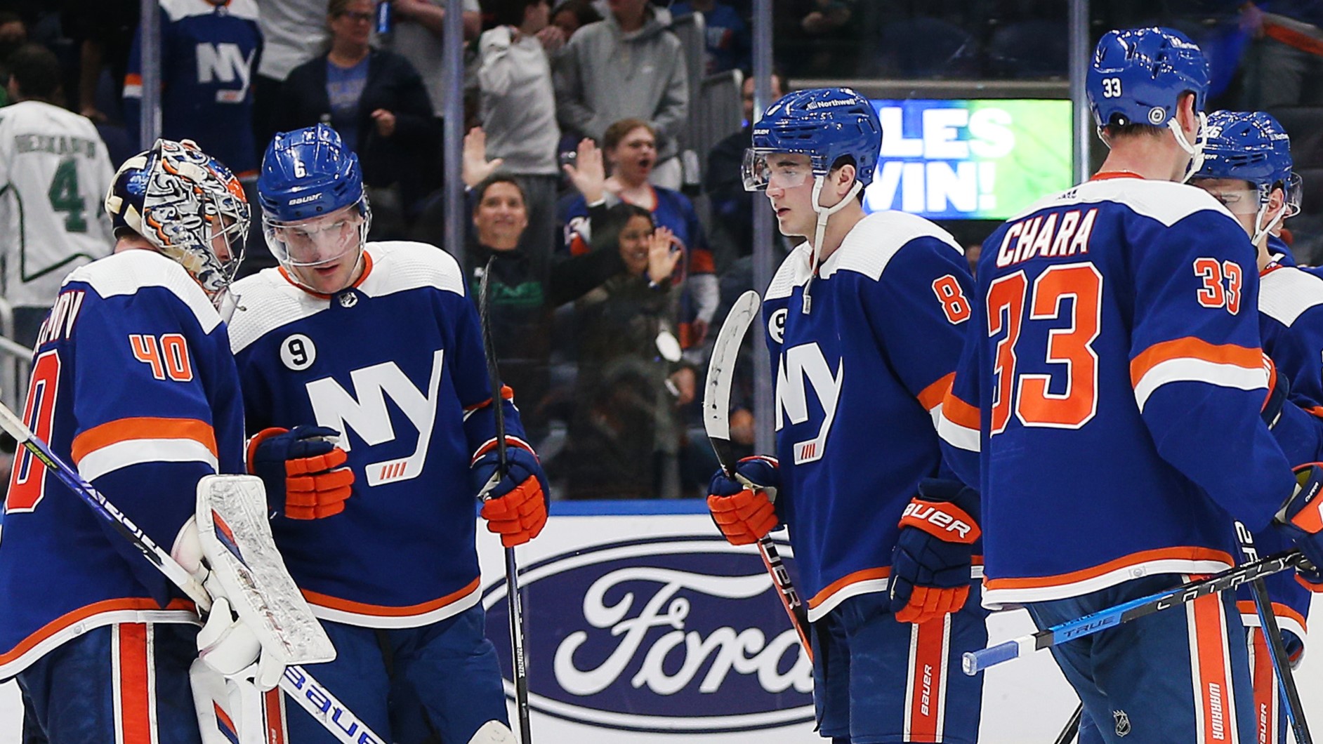 Brock Nelson’s third-period hat trick leads Islanders past Stars, 4-2Semyon Varlamov made 37 saves3/19/2022, 9:43 PMMar 19, 2022; Elmont, New York, USA; The New York Islanders react after defeating the Dallas Stars at UBS Arena. / Andy Marlin-USA TODAY Sports