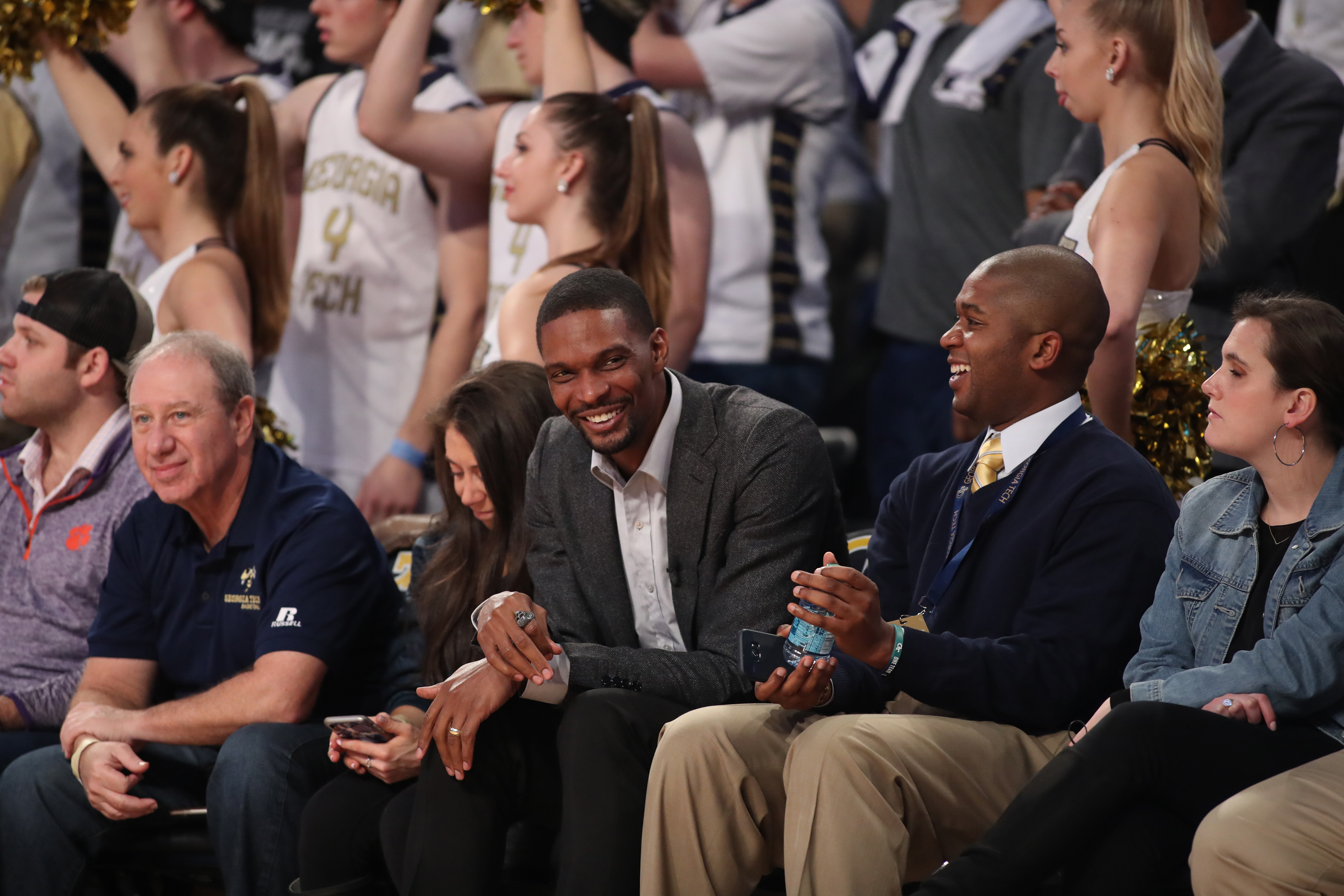 Jan 28, 2018; Atlanta, GA, USA; Georgia Tech Yellow Jackets former basketball player Chris Bosh watches the Yellow Jackets game against the Clemson Tigers at McCamish Pavilion. Mandatory Credit: Jason Getz-USA TODAY Sports / Jason Getz