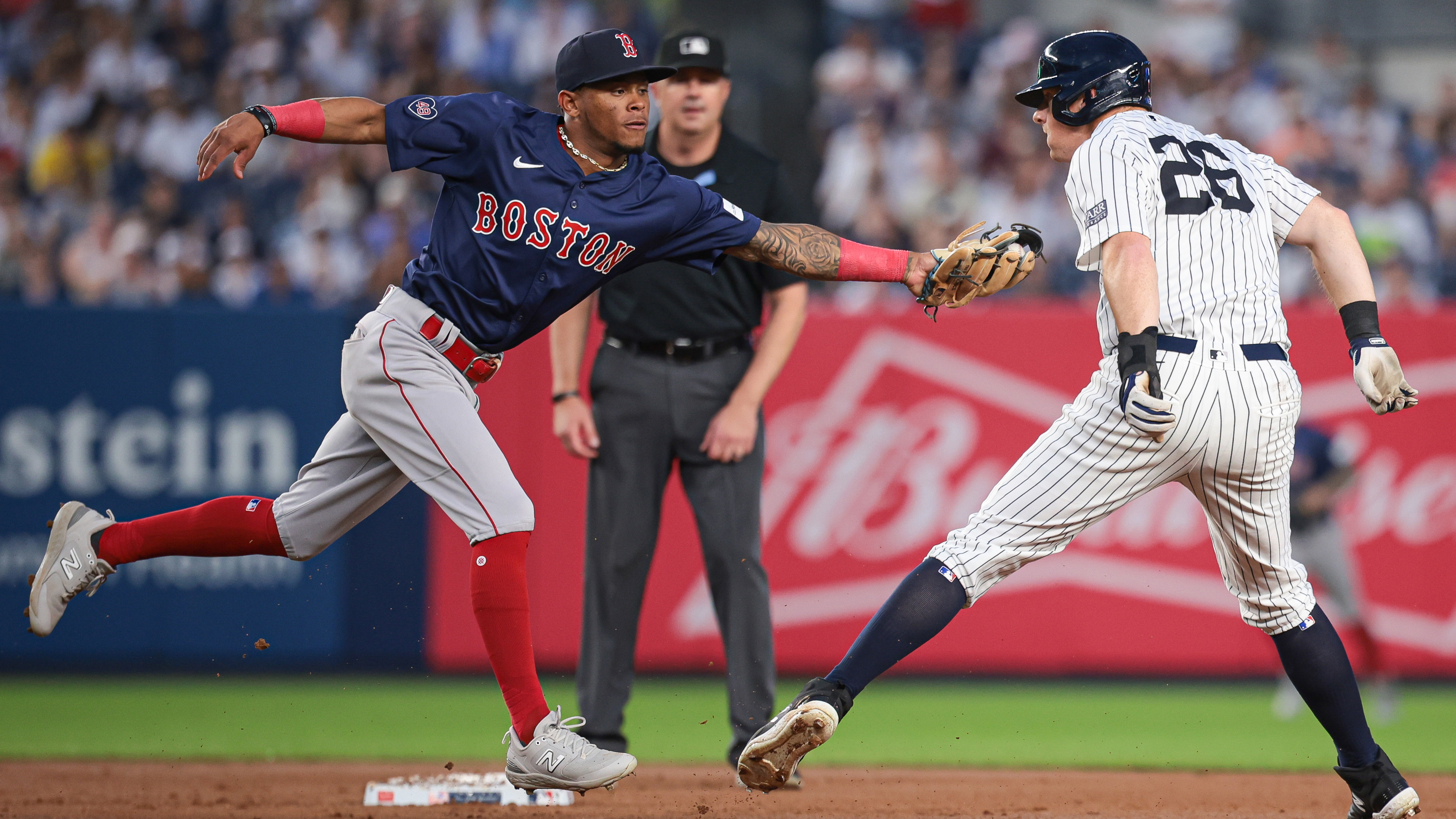 Clay Holmes blows save, Yankees fall to Red Sox in 10 innings, 5-3Yanks' losing streak reaches four games with gut-punching loss7/6/2024, 2:54 AMAssociated PressBoston Red Sox center fielder Ceddanne Rafaela (43) attempts to tag New York Yankees third baseman DJ LeMahieu (26) at second base during the third inning at Yankee Stadium. / Vincent Carchietta-USA TODAY Sports