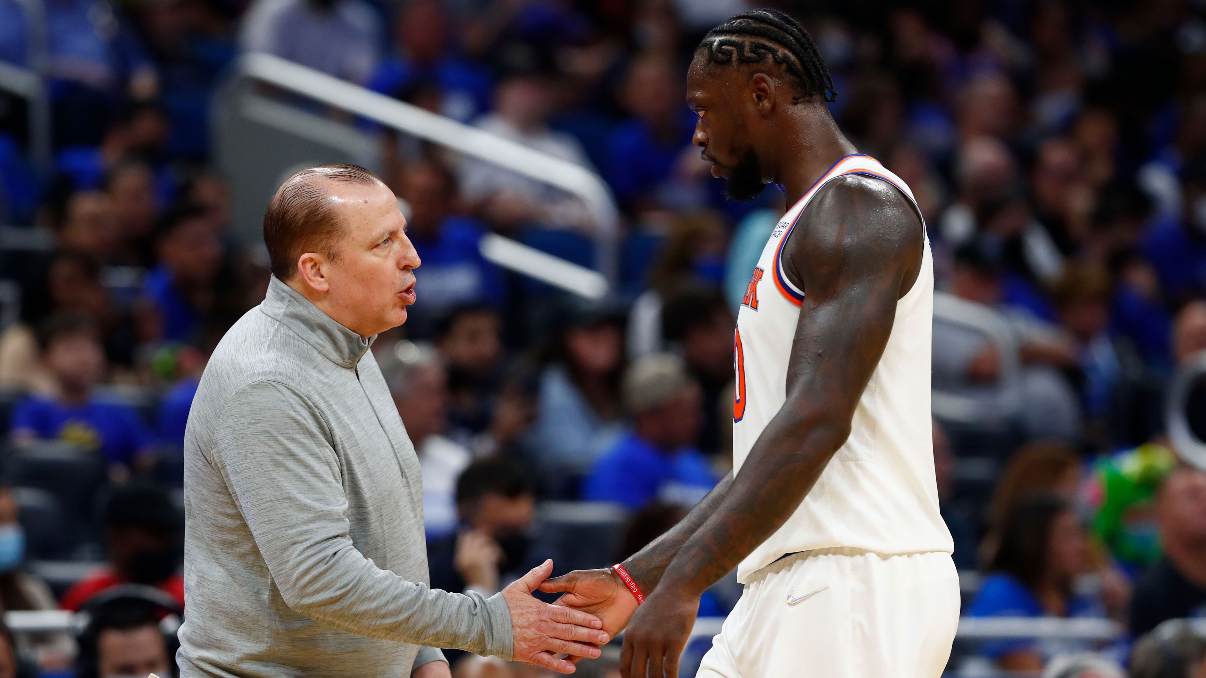 Closing lineups in focus as Knicks adjust to new offensive schemePlus, an update on the Portland investigation11/18/2021, 11:46 PMIan BegleyNBA InsiderOct 22, 2021; Orlando, Florida, USA; New York Knicks head coach Tom Thibodeau talks with forward Julius Randle (30) during the second half at Amway Center. / Kim Klement-USA TODAY Sports