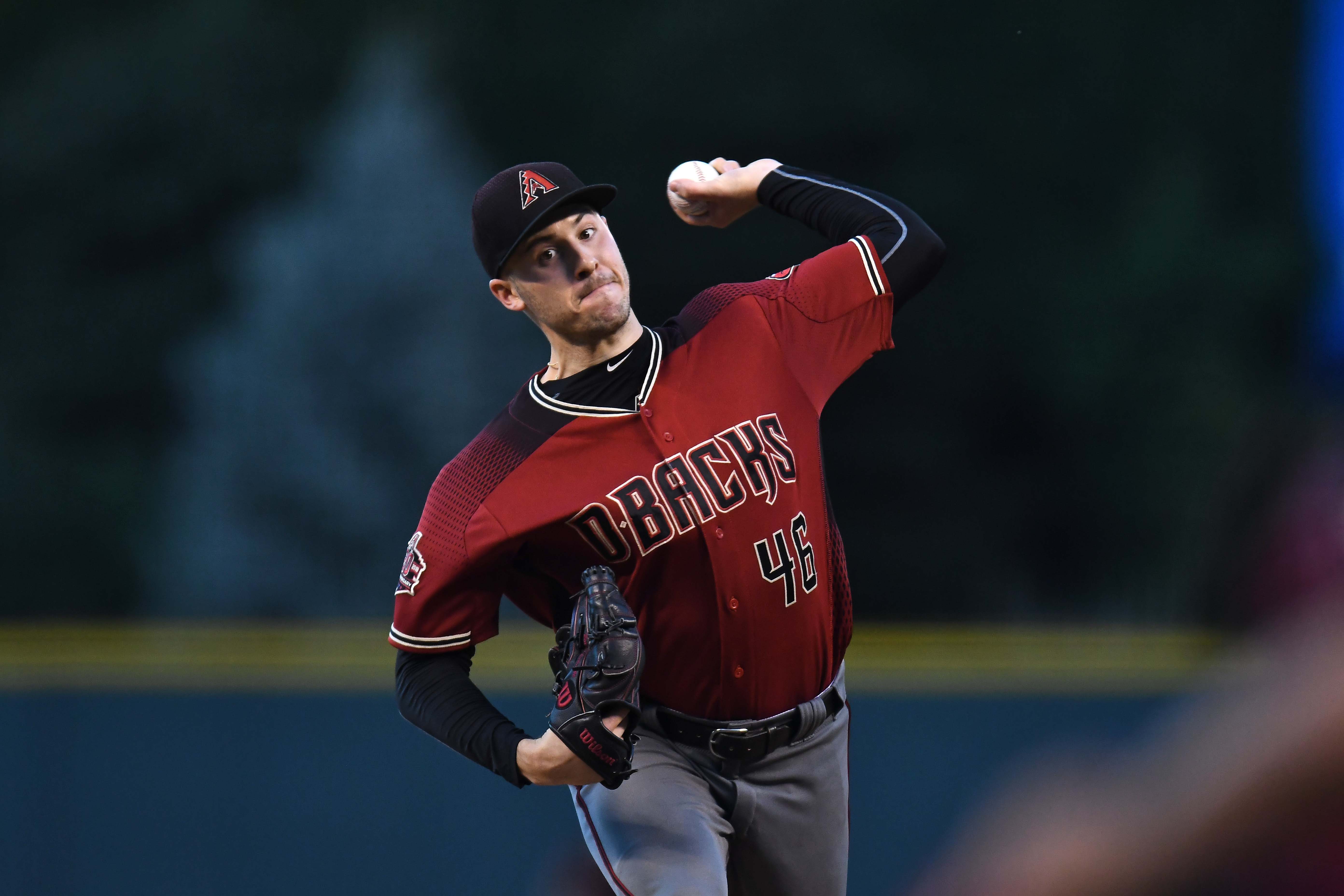 Sep 12, 2018; Denver, CO, USA; Arizona Diamondbacks starting pitcher Patrick Corbin (46) delivers a pitch in the first inning against the Colorado Rockies at Coors Field. Mandatory Credit: Ron Chenoy-USA TODAY Sports / Ron Chenoy