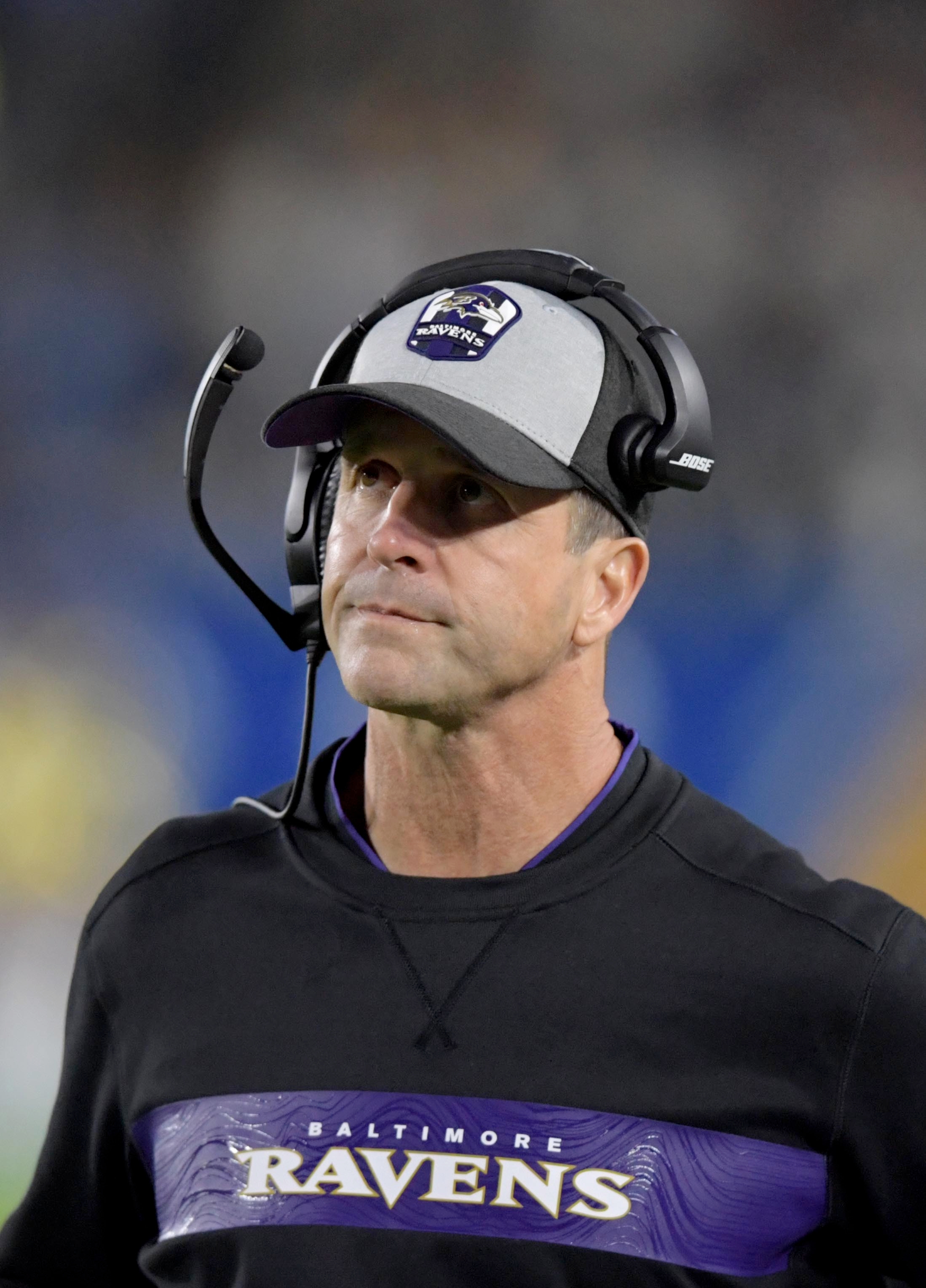 Baltimore Ravens head coach John Harbaugh looks on against the Los Angeles Chargers during the second half at StubHub Center. / Kirby Lee/USA TODAY Sports
