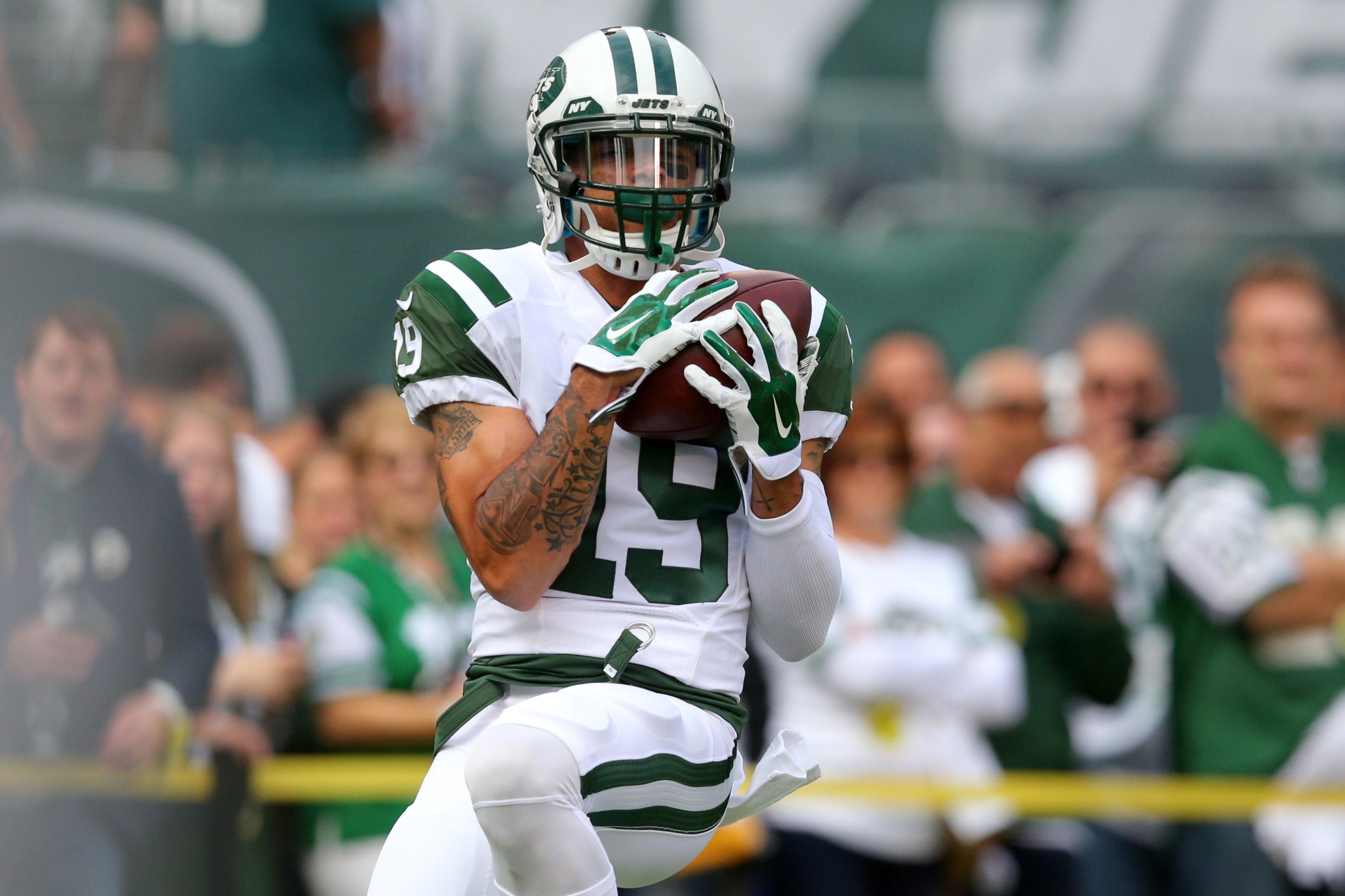 New York Jets wide receiver Devin Smith (19) catches a pass during warmups before a game against the Philadelphia Eagles at MetLife Stadium. / Brad Penner