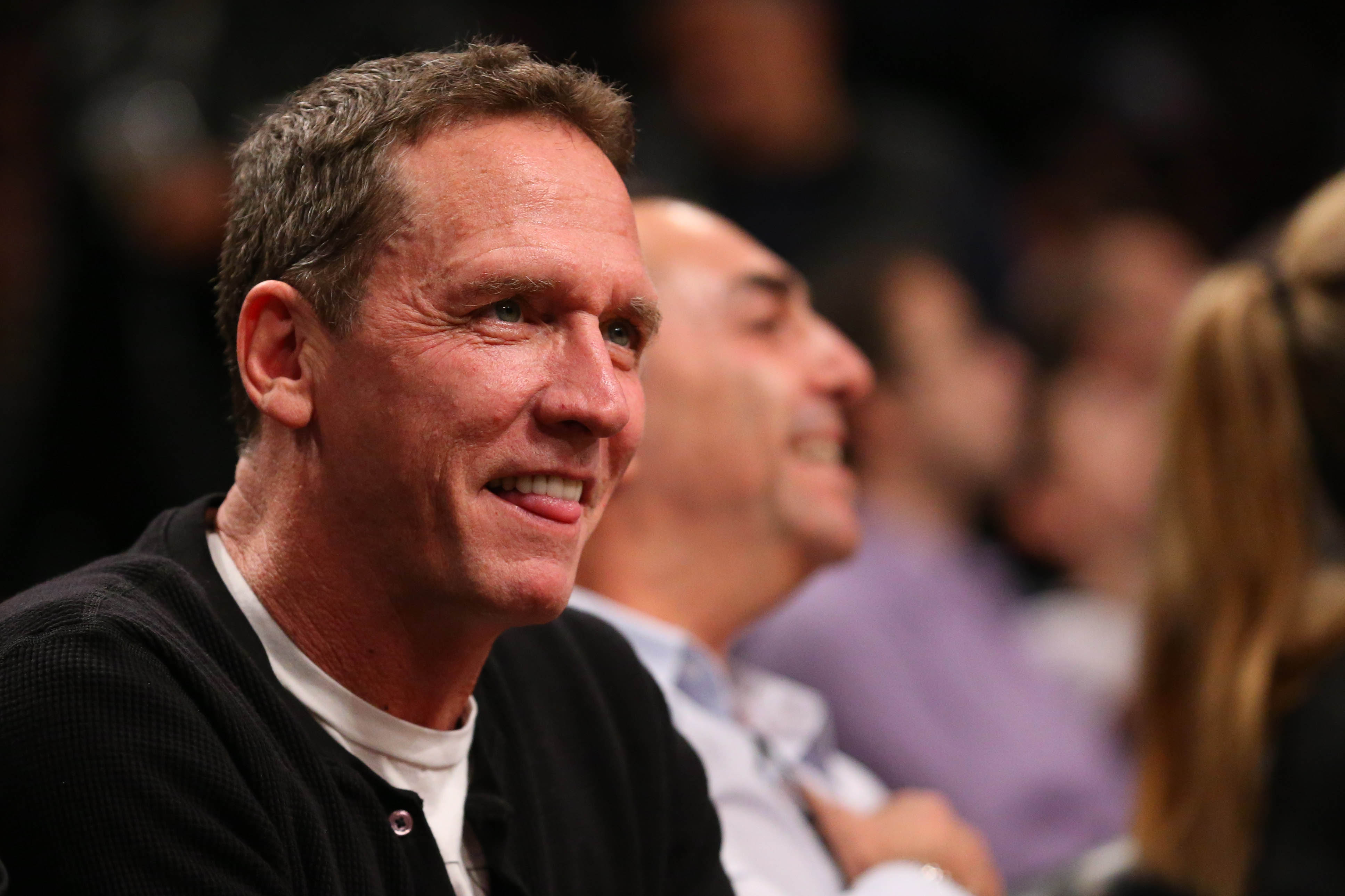 Feb 3, 2016; Brooklyn, NY, USA; Former MLB pitcher David Cone sits court side during the game between the Brooklyn Nets and the Indiana Pacers at Barclays Center. Indiana Pacers won 114-100. Mandatory Credit: Anthony Gruppuso-USA TODAY Sports / Anthony Gruppuso