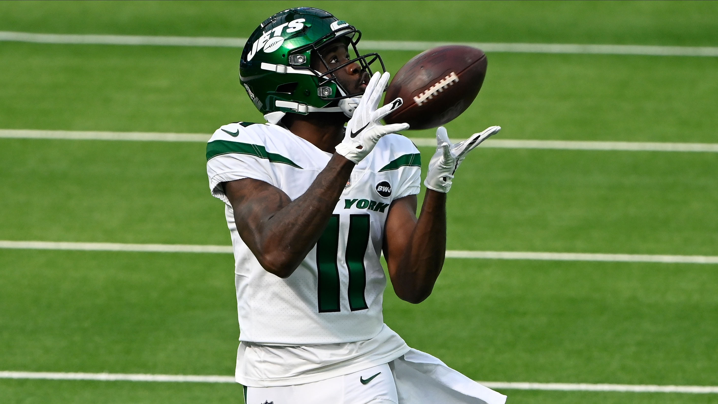 Denzel Mims trying to work way back up Jets' depth chartThe Jets revamped their WR corps while Mims dealt with food poisoning8/11/2021, 8:05 PMRalph VacchianoNFL InsiderNov 22, 2020; Inglewood, California, USA; New York Jets wide receiver Denzel Mims (11) makes a catch during pre-game warmups before playing the Los Angeles Chargers at SoFi Stadium. / Robert Hanashiro-USA TODAY SportsJan 3, 2021; Foxborough, Massachusetts, USA; New York Jets wide receiver Denzel Mims (11) goes up for a catch over New England Patriots cornerback Joejuan Williams (33) during the first half at Gillette Stadium. Mandatory Credit: Winslow Townson-USA TODAY Sports / © Winslow Townson-USA TODAY Sports
