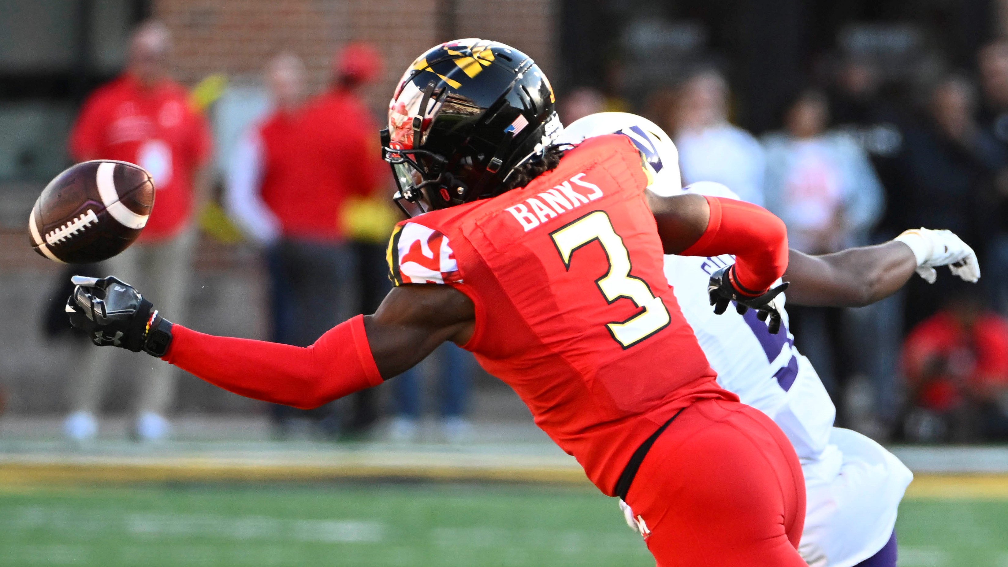 Dec 30, 2022; Charlotte, NC, USA; North Carolina State Wolfpack wide receiver Keyon Lesane (15) reaches for a pass as Maryland Terrapins defensive back Deonte Banks (3) defends in the fourth quarter in the 2022 Duke's Mayo Bowl at Bank of America Stadium. / Bob Donnan-USA TODAY Sports