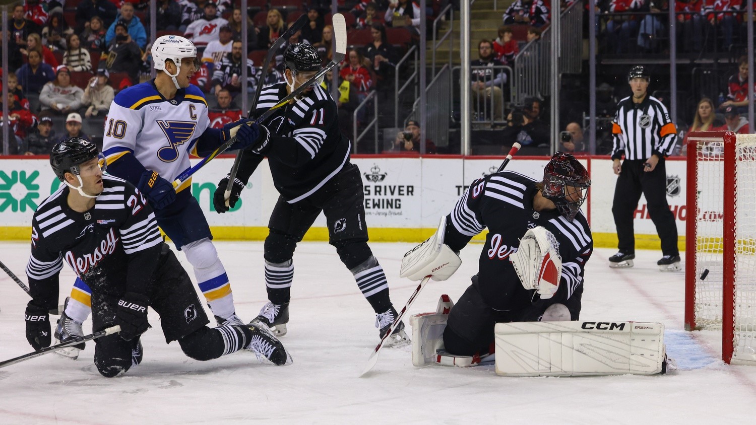 Blues spoil Jacob Markstrom's 500th career game in Devils' 3-0 lossMarkstrom stopped 15 shots11/28/2024, 3:13 AMAssociated PressNov 27, 2024; Newark, New Jersey, USA; St. Louis Blues center Dylan Holloway (81) (not shown) scores a goal on New Jersey Devils goaltender Jacob Markstrom (25) during the first period at Prudential Center. / Ed Mulholland-Imagn Images