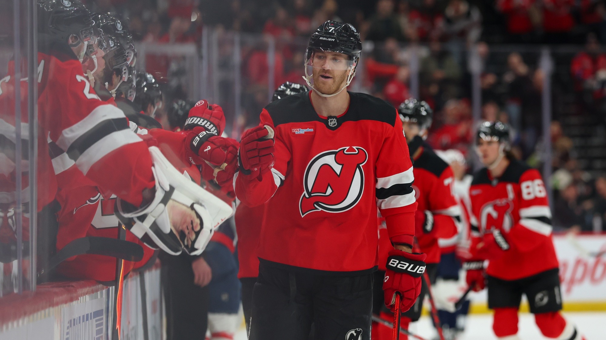 Devils score season-high seven goals in win over CapitalsJack Hughes, Jesper Bratt recorded five points each in win4/3/2026, 2:28 AMAssociated PressApr 2, 2026; Newark, New Jersey, USA; New Jersey Devils defenseman Dougie Hamilton (7) celebrates his goal against the Washington Capitals during the first period at Prudential Center. / Ed Mulholland-Imagn Images