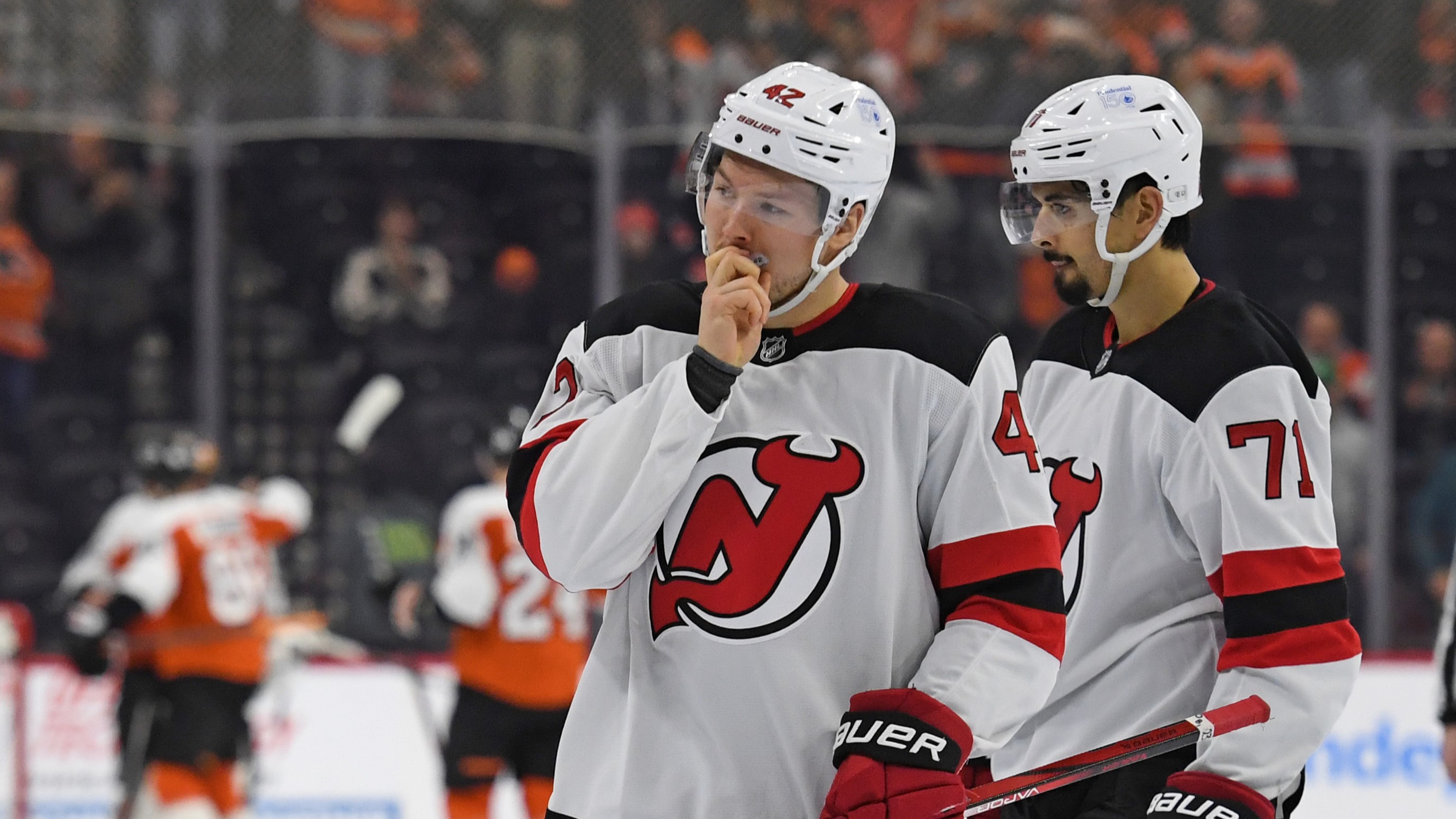 Devils stumble in 4-2 loss to FlyersNew Jersey remains winless against Philadelphia this season1/28/2025, 3:22 AMAssociated PressJan 27, 2025; Philadelphia, Pennsylvania, USA; New Jersey Devils center Curtis Lazar (42) and New Jersey Devils defenseman Jonas Siegenthaler (71) skate off the ice after loss to the Philadelphia Flyers at Wells Fargo Center. Mandatory Credit: Eric Hartline-Imagn Images / © Eric Hartline-Imagn Images