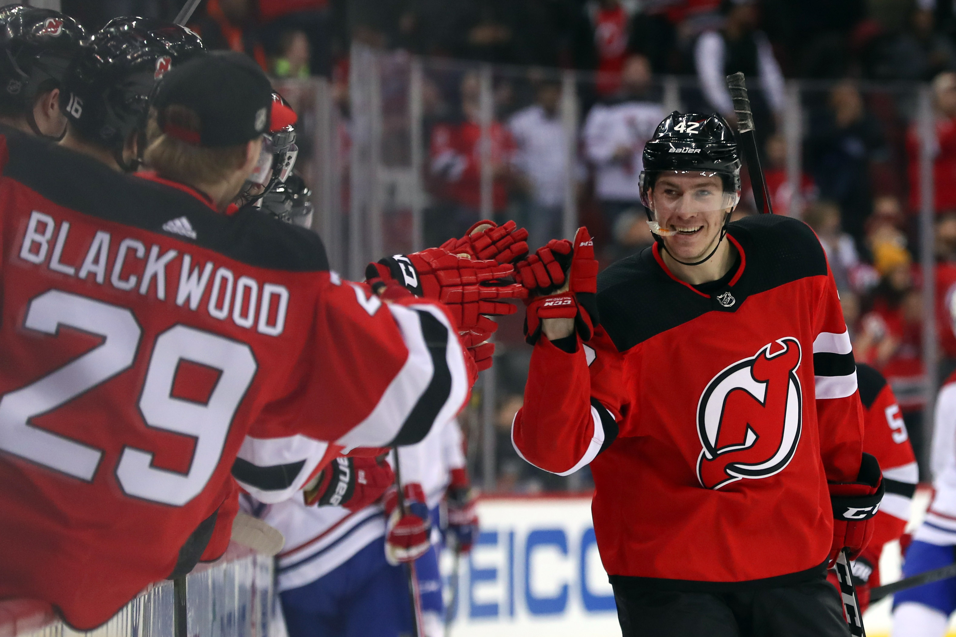 Devils hang on for 2-1 win over CanadiensBastian, Gabriel score for New Jersey2/26/2019, 2:53 AMNew Jersey Devils right wing Nathan Bastian celebrates his first NHL goal during the first period of their game against the Montreal Canadiens at Prudential Center. / Ed Mulholland/USA TODAY Sports
