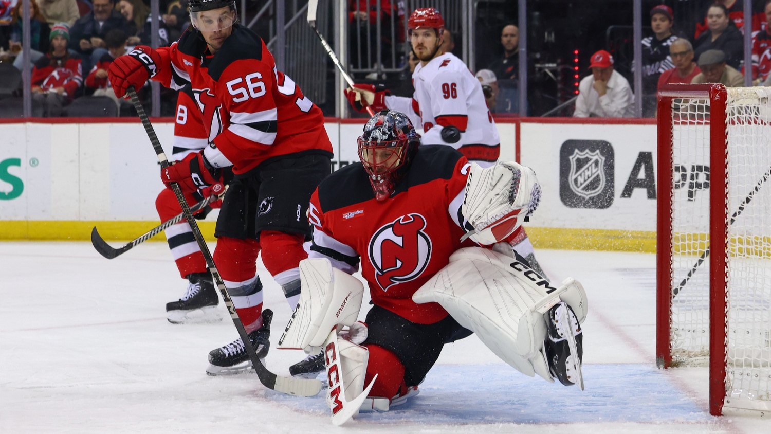 Jacob Markstrom's 20 saves lifts Devils to 4-2 win over HurricanesDevils have won three of last four games11/22/2024, 2:58 AMAssociated PressNov 21, 2024; Newark, New Jersey, USA; New Jersey Devils goaltender Jacob Markstrom (25) defends his net against the Carolina Hurricanes during the first period at Prudential Center. / Ed Mulholland-Imagn Images