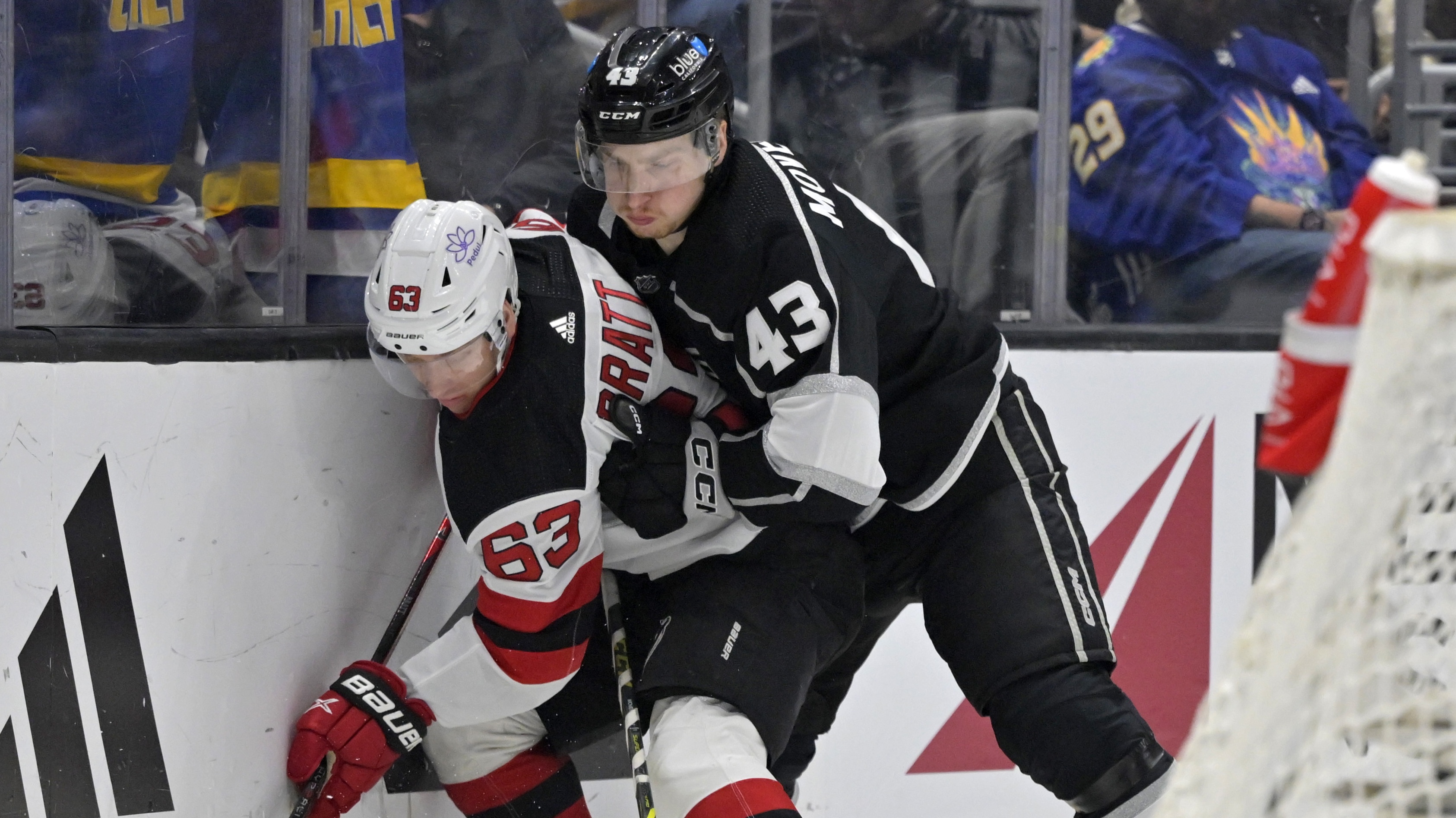 Devils close out West Coast road trip with 5-1 loss to KingsNew Jersey allowed three unanswered goals over the last two periods3/3/2024, 11:24 PMAssociated PressNew Jersey Devils left wing Jesper Bratt (63) and Los Angeles Kings defenseman Jacob Moverare (43) battle along the boards in the first period at Crypto.com Arena / Jayne Kamin-Oncea - USA TODAY Sports
