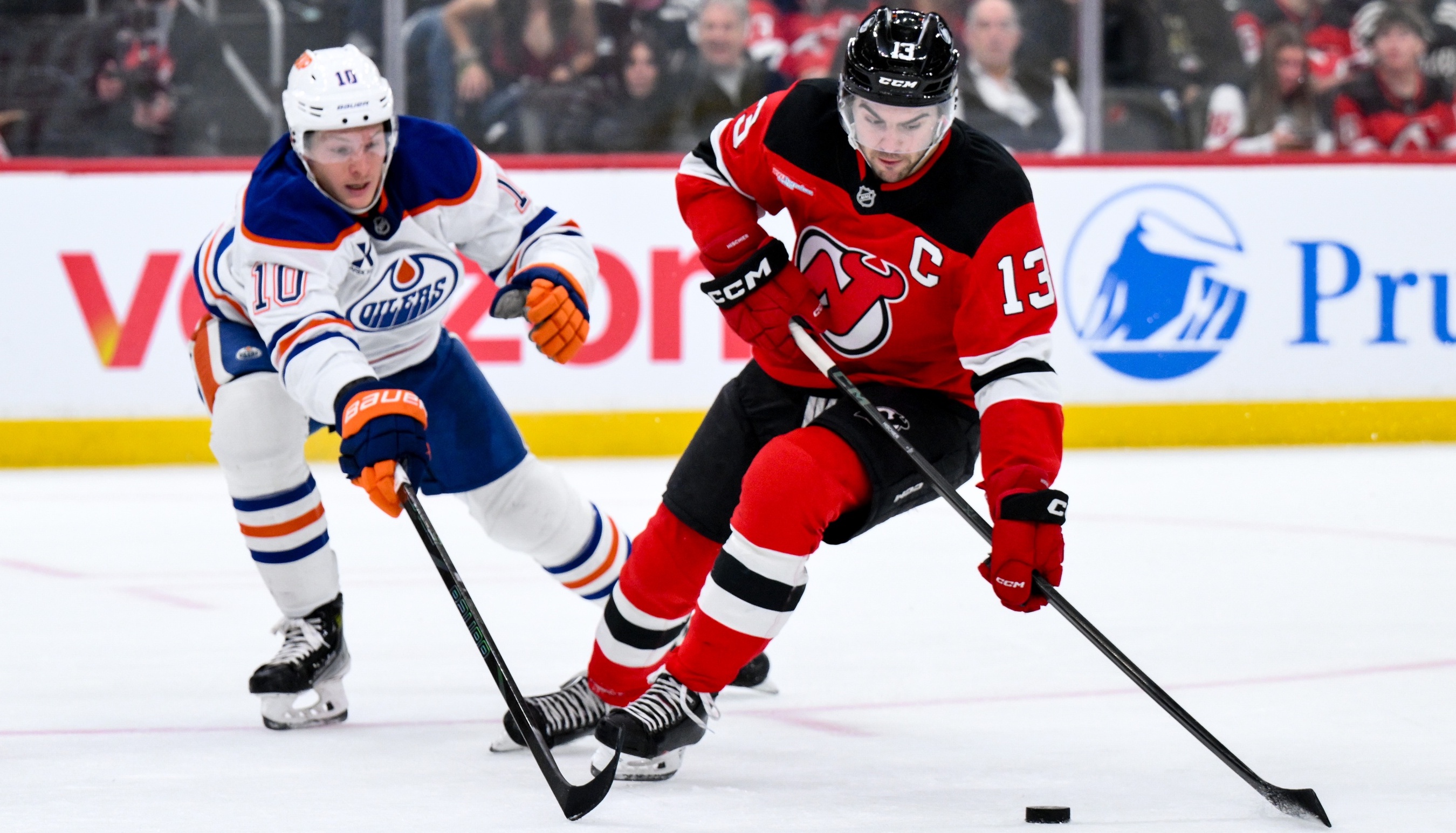Devils winning streak extends to four games with 5-3 win over OilersJack Hughes led all scorers with three points on two goals, one assist10/18/2025, 10:23 PMAssociated PressNew Jersey Devils center Nico Hischier (13) skates with the puck while defended by Edmonton Oilers center Trent Frederic (10) during the second period at Prudential Center. / John Jones-Imagn Images