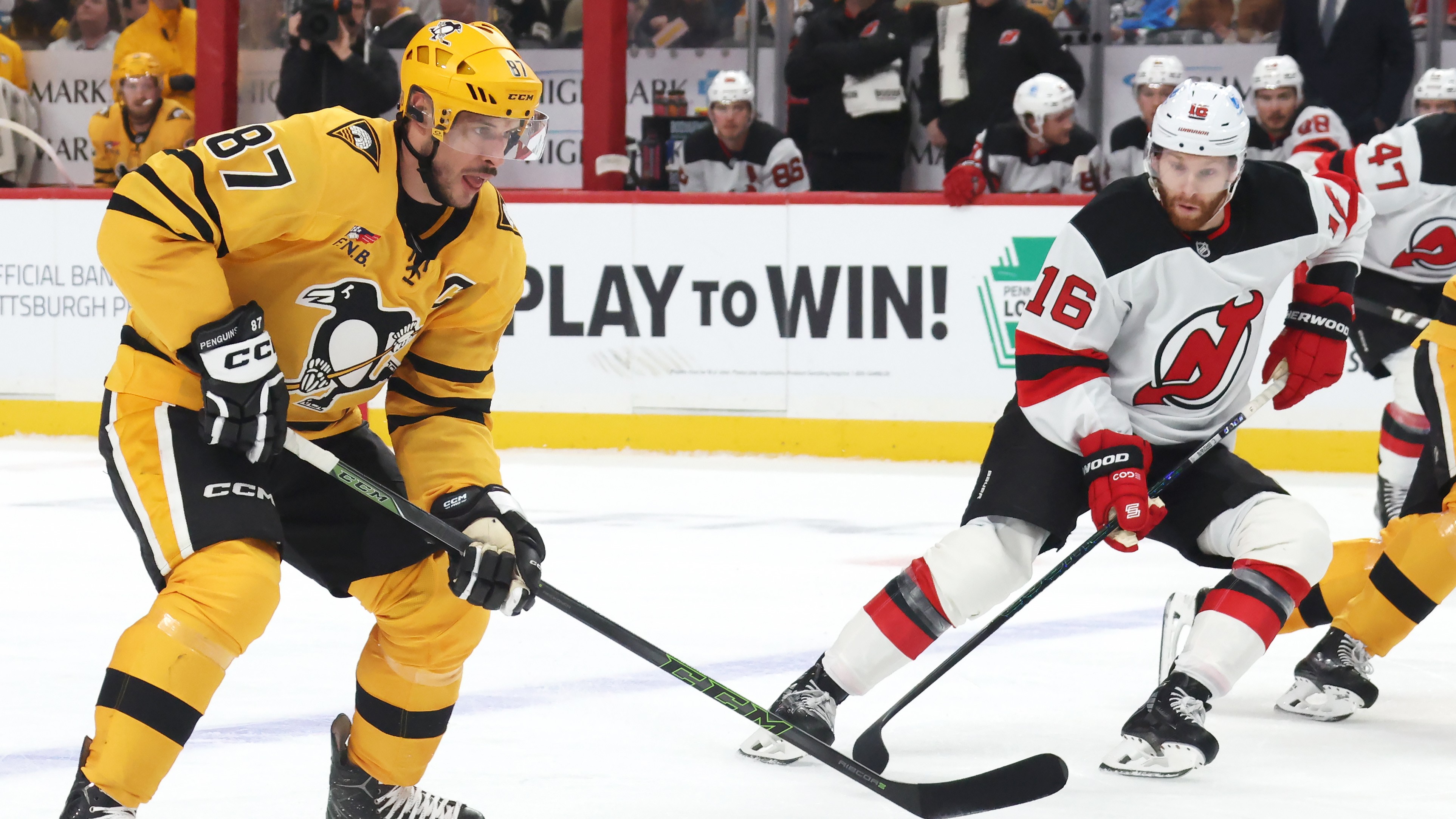 Devils' alarming woes continue with 4-1 loss to PenguinsNew Jersey has scored only twice in last 10 periods1/9/2026, 2:54 AMAssociated PressJan 8, 2026; Pittsburgh, Pennsylvania, USA; Pittsburgh Penguins center Sidney Crosby (87) skates with the puck against New Jersey Devils right wing Connor Brown (16) during the first period at PPG Paints Arena / Charles LeClaire-Imagn Images