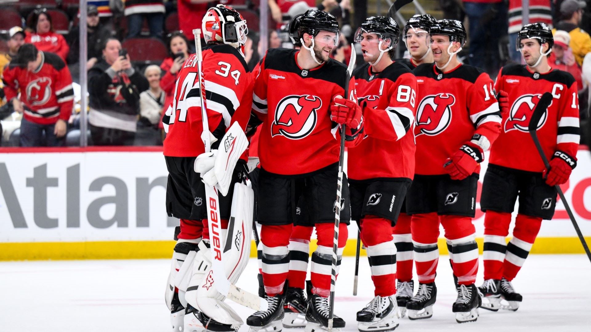 Devils take first place lead in Metropolitan Division with 2-1 shootout win over PenguinsPaul Cotter scored the shootout winner, Jake Allen stopped 33 of 34 shots he faced11/8/2025, 8:52 PMAssociated PressNov 8, 2025; Newark, New Jersey, USA; New Jersey Devils celebrate after winning against the Pittsburgh Penguins in two overtimes at Prudential Center. / John Jones-Imagn Images