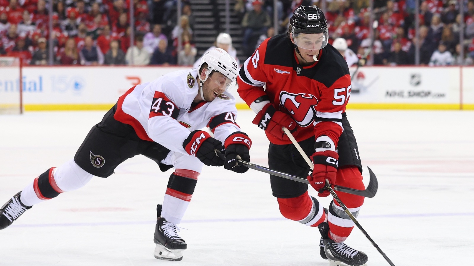Despite late goal, Devils go quietly in 3-2 loss to SenatorsNew Jersey is now 0-2 on current three-game homestand3/23/2025, 2:41 AMAssociated PressNew Jersey Devils left wing Erik Haula (56) skates with the puck as Ottawa Senators defenseman Tyler Kleven (43) defends during the second period at Prudential Center. / Ed Mulholland-Imagn Images