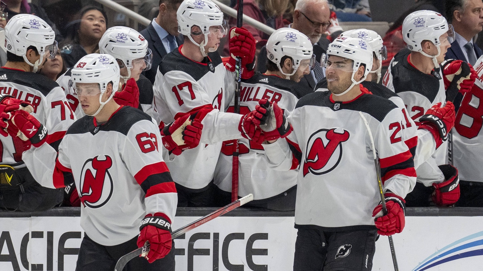 Devils pour it on against Sharks in 7-2 routNico Daws made 28 saves behind the net2/28/2024, 6:35 AMAssociated PressNew Jersey Devils left wing Jesper Bratt (63) celebrates with teammates after the goal against the San Jose Sharks during the second period at SAP Center at San Jose. / Neville E. Guard-USA TODAY Sports