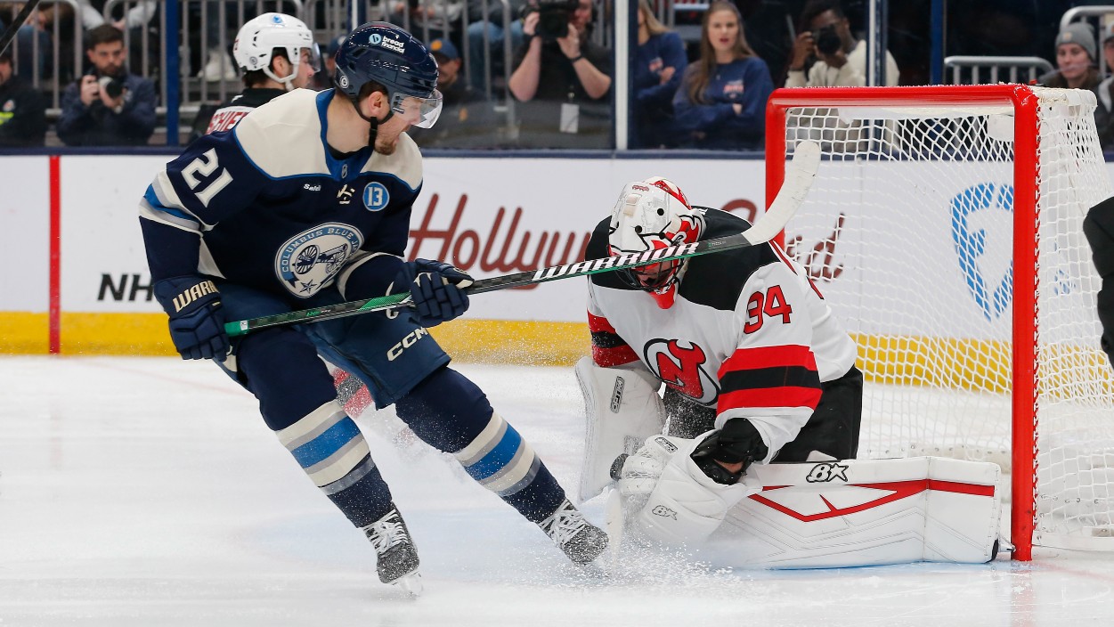 Devils' winning run ends with 4-2 loss to Blue JacketsLuke Hughes had a goal and an assist, Timo Meier scored12/20/2024, 3:15 AMAssociated PressNew Jersey Devils goalie Jake Allen (34) makes a save on the shot attempt of Columbus Blue Jackets left wing James van Riemsdyk (21) during the second period at Nationwide Arena. / Russell LaBounty-Imagn Images
