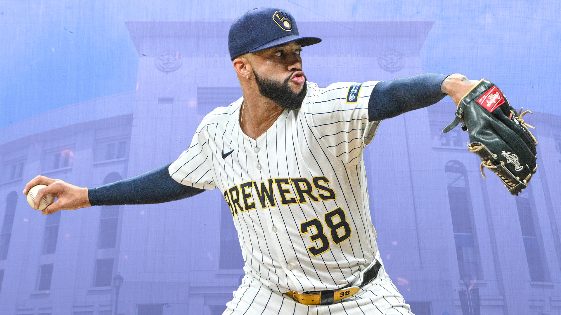 Sep 18, 2024; Milwaukee, Wisconsin, USA; Milwaukee Brewers pitcher Devin Williams (38) reacts after pitching in the ninth inning against the Philadelphia Phillies at American Family Field. / Benny Sieu-Imagn Images