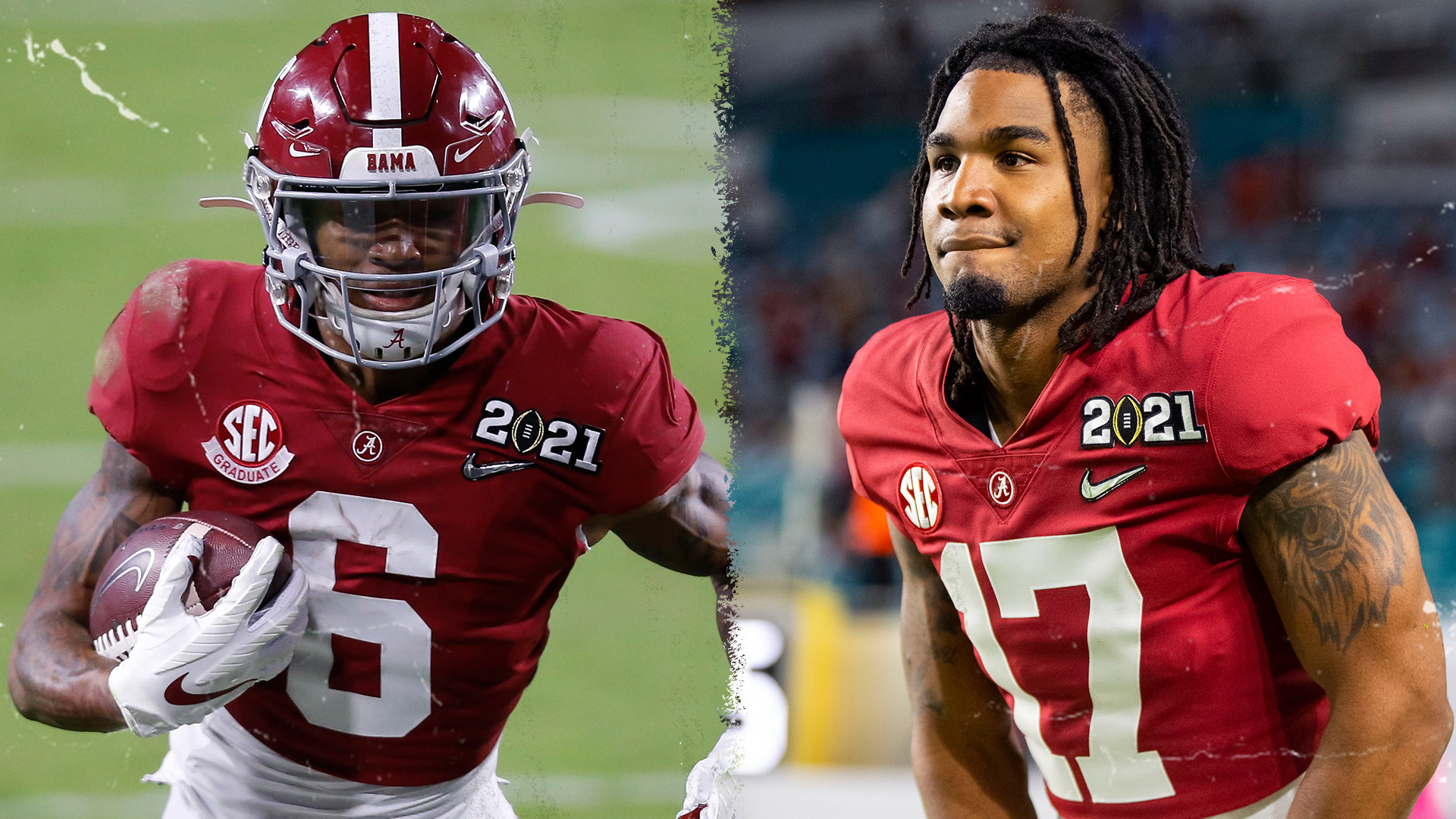 DeVonta Smith or Jaylen Waddle: Which Alabama WR should Giants pick in NFL Draft?Both are elite wideouts, but is one a better fit for Jason Garrett's offense?4/15/2021, 5:34 PMScott ThompsonEditorial ProducerAlabama wide receivers DeVonta Smith and Jaylen Waddle / Treated by SNY