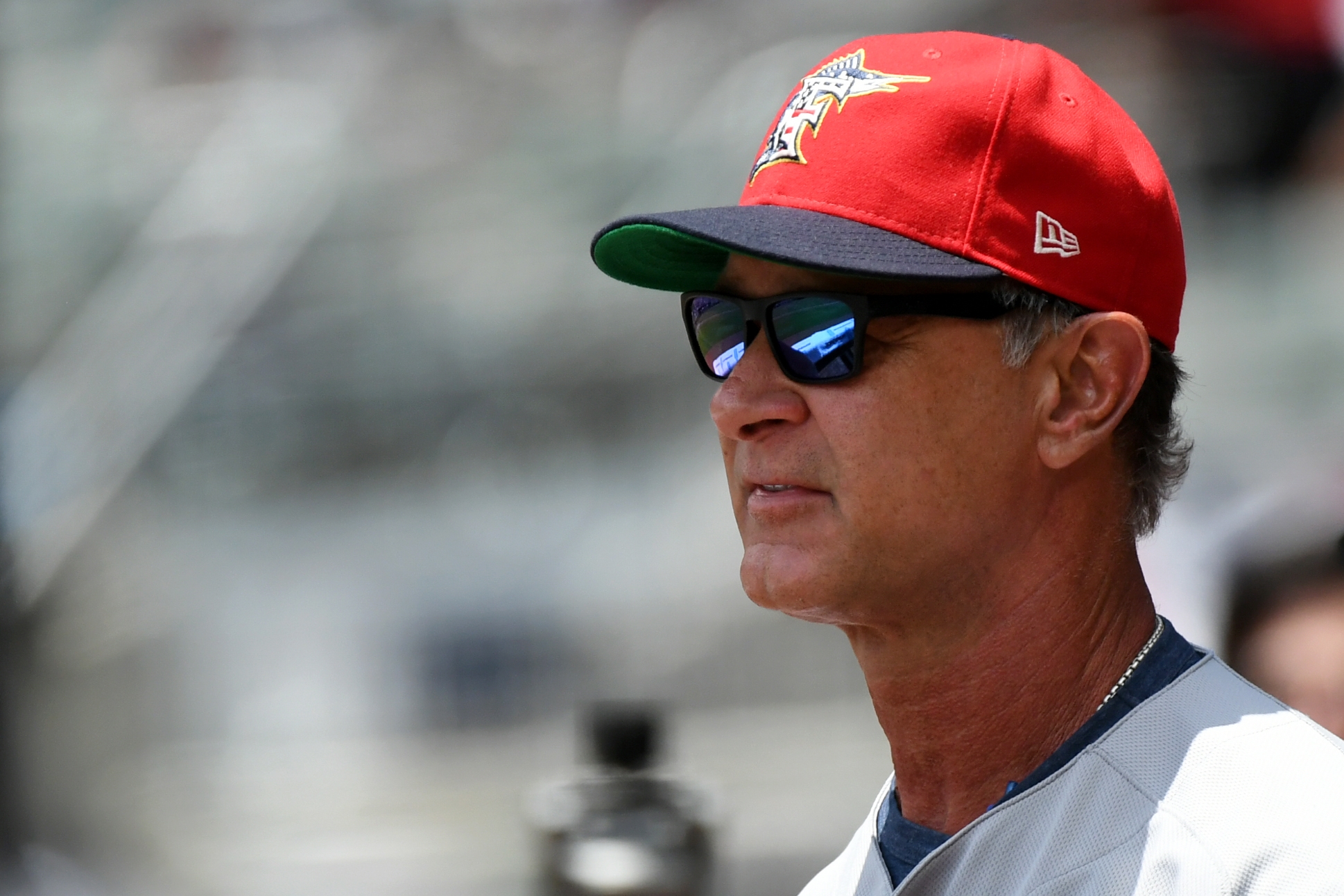 Jul 7, 2019; Cumberland, GA, USA; Miami Marlins manager Don Mattingly (8) in the dugout against the Atlanta Braves at SunTrust Park. Mandatory Credit: Adam Hagy-USA TODAY Sports / Adam Hagy