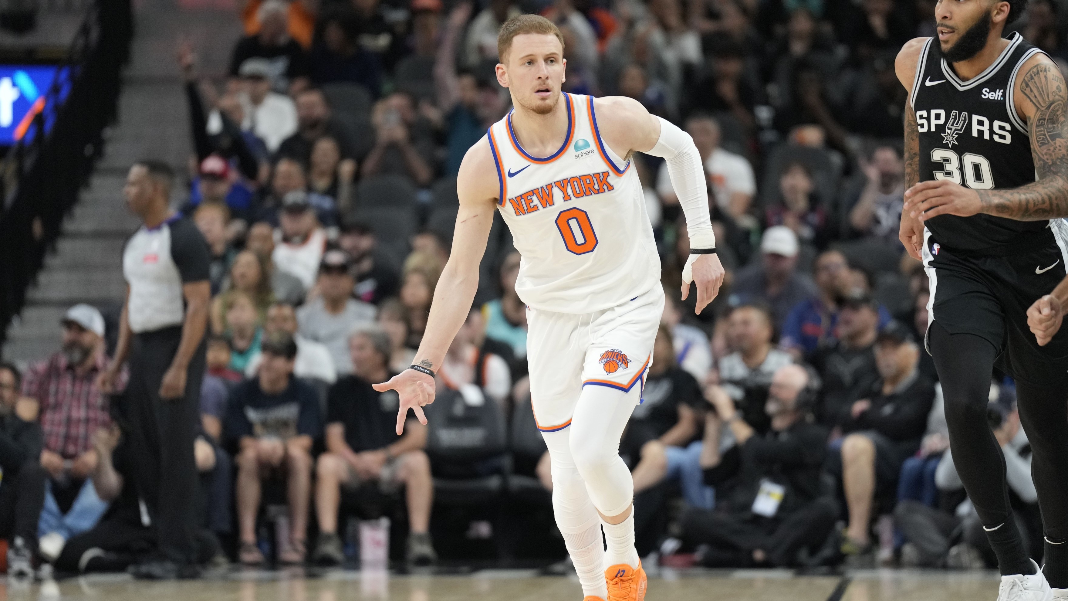 Donte DiVincenzo breaks Knicks record for three-pointers made in a single seasonDiVincenzo surpasses Evan Fournier's record set in 20223/30/2024, 1:06 AMPhillip MartinezEditorial ProducerMar 29, 2024; San Antonio, Texas, USA; New York Knicks guard Donte DiVincenzo (0) reacts after scoring a three point basket during the first half against the San Antonio Spurs at Frost Bank Center. / Scott Wachter-USA TODAY Sports