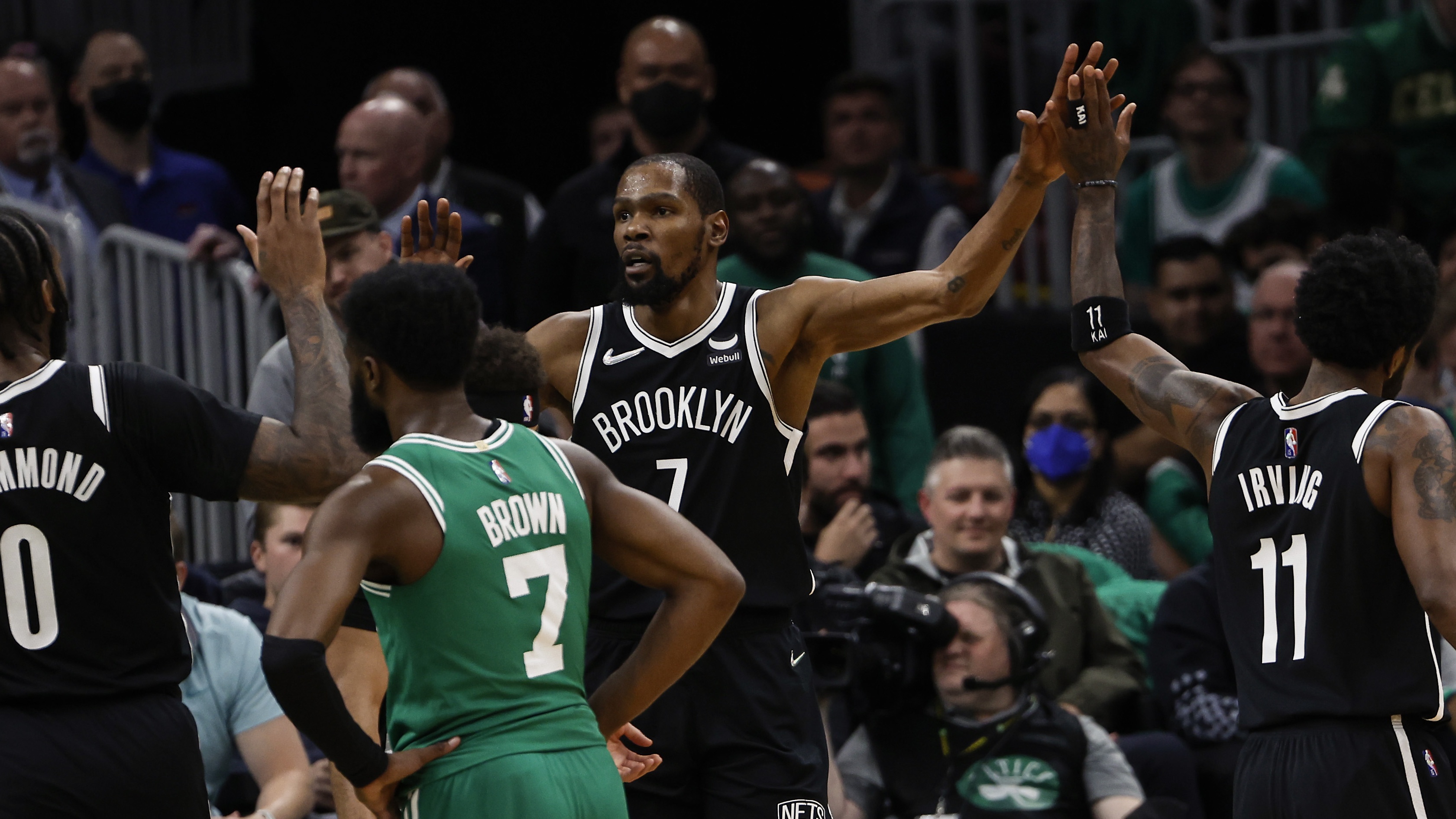 Even with potential first-round exit, Nets' season wouldn't be total failureBrooklyn's starting five have played 135 minutes together in regular season4/23/2022, 2:00 PMDavid VertsbergerNBA freelance writerApr 20, 2022; Boston, Massachusetts, USA; Brooklyn Nets forward Kevin Durant (7) high fives center Andre Drummond (0) and guard Kyrie Irving (11) as Boston Celtics guard Jaylen Brown (7) looks away during the first quarter of game two of the first round for the 2022 NBA playoffs at TD Garden. Mandatory Credit: Winslow Townson-USA TODAY Sports / © Winslow Townson-USA TODAY Sports