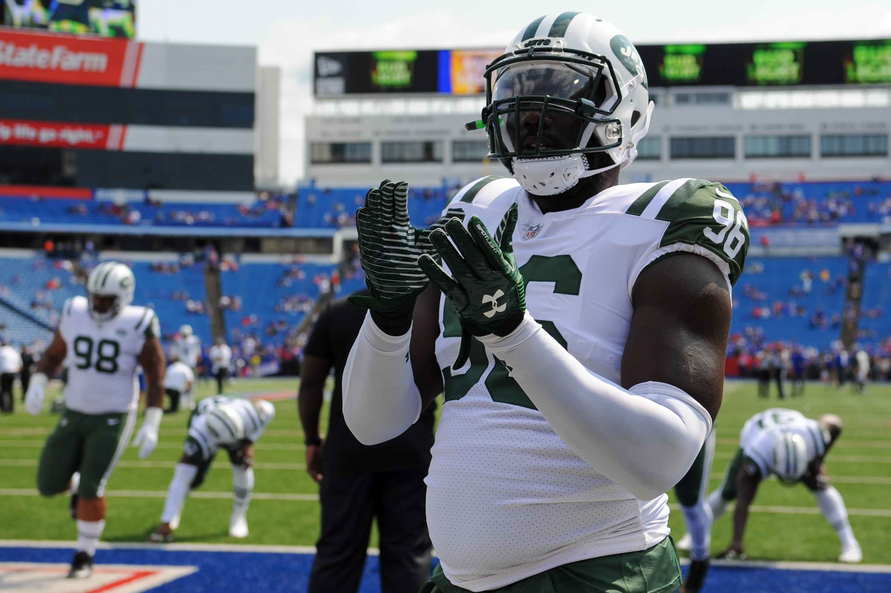 New York Jets defensive end Muhammad Wilkerson looks to the fans prior to the game against the Buffalo Bills at New Era Field. / Rich Barnes/USA TODAY Sports