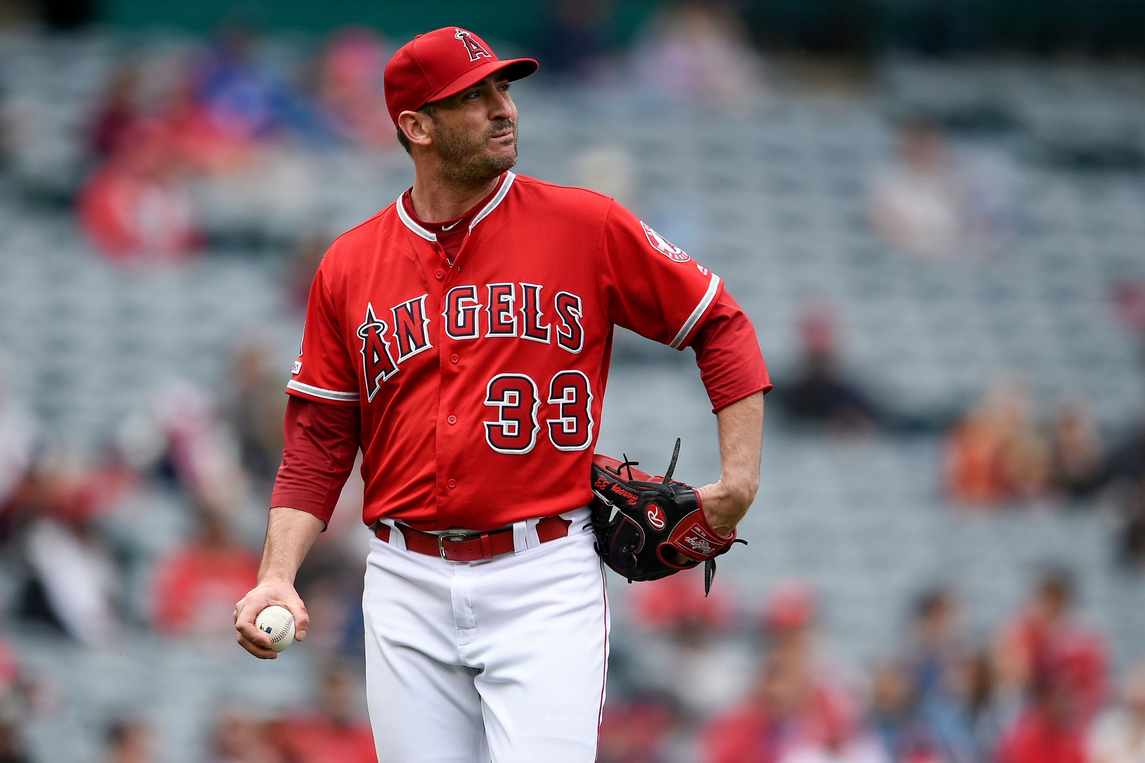 May 23, 2019; Anaheim, CA, USA; Los Angeles Angels starting pitcher Matt Harvey (33) reacts after allowing a single to Minnesota Twins left fielder Eddie Rosario (20) during the second inning at Angel Stadium of Anaheim. Mandatory Credit: Kelvin Kuo-USA TODAY Sports / Kelvin Kuo