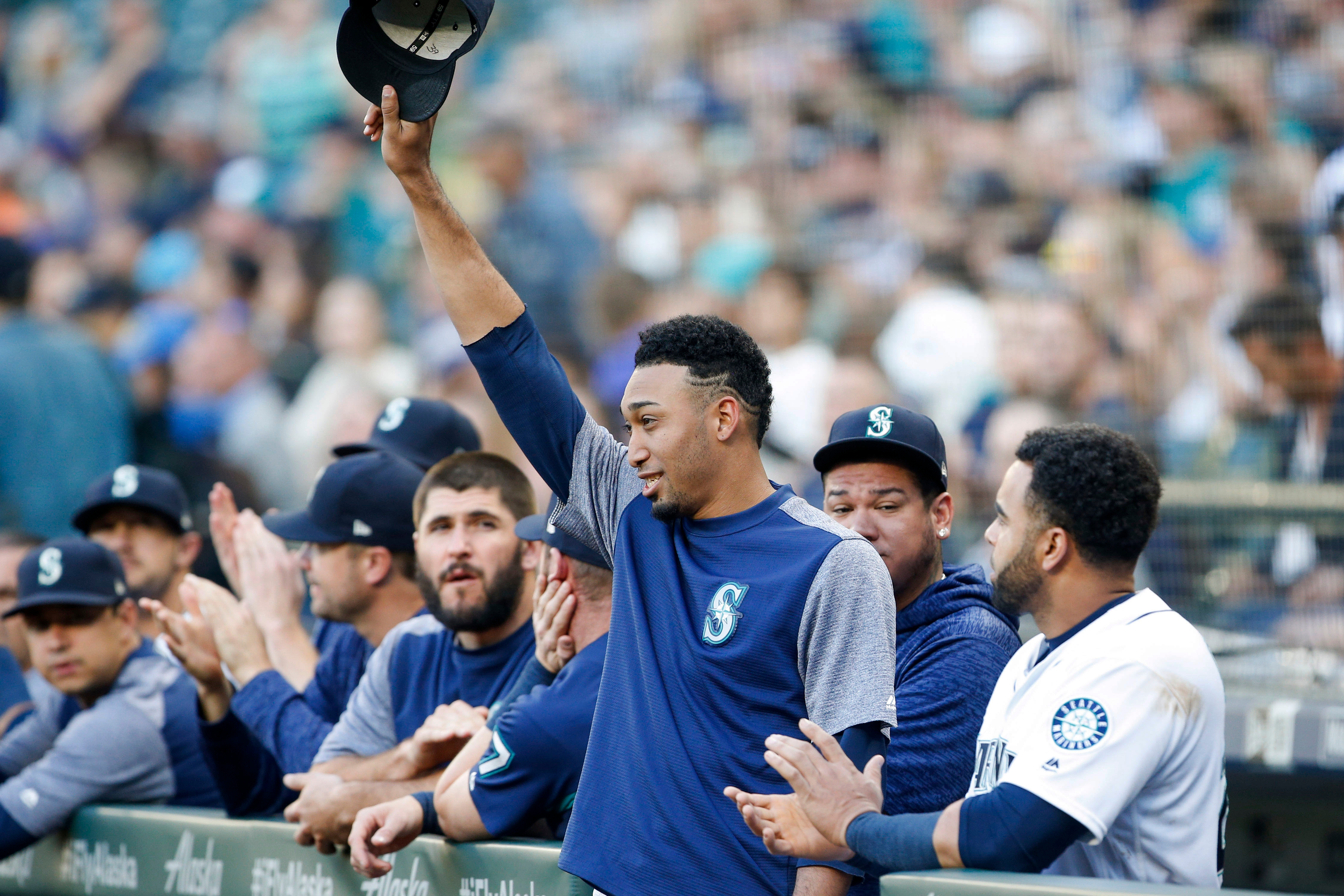 Seattle Mariners relief pitcher Edwin Diaz tips his cap to the crowd following a video presentation recognizing his new single-season team saves record of 50 during the middle of the first inning against the Baltimore Orioles at Safeco Field. / Joe Nicholson/USA TODAY Sports