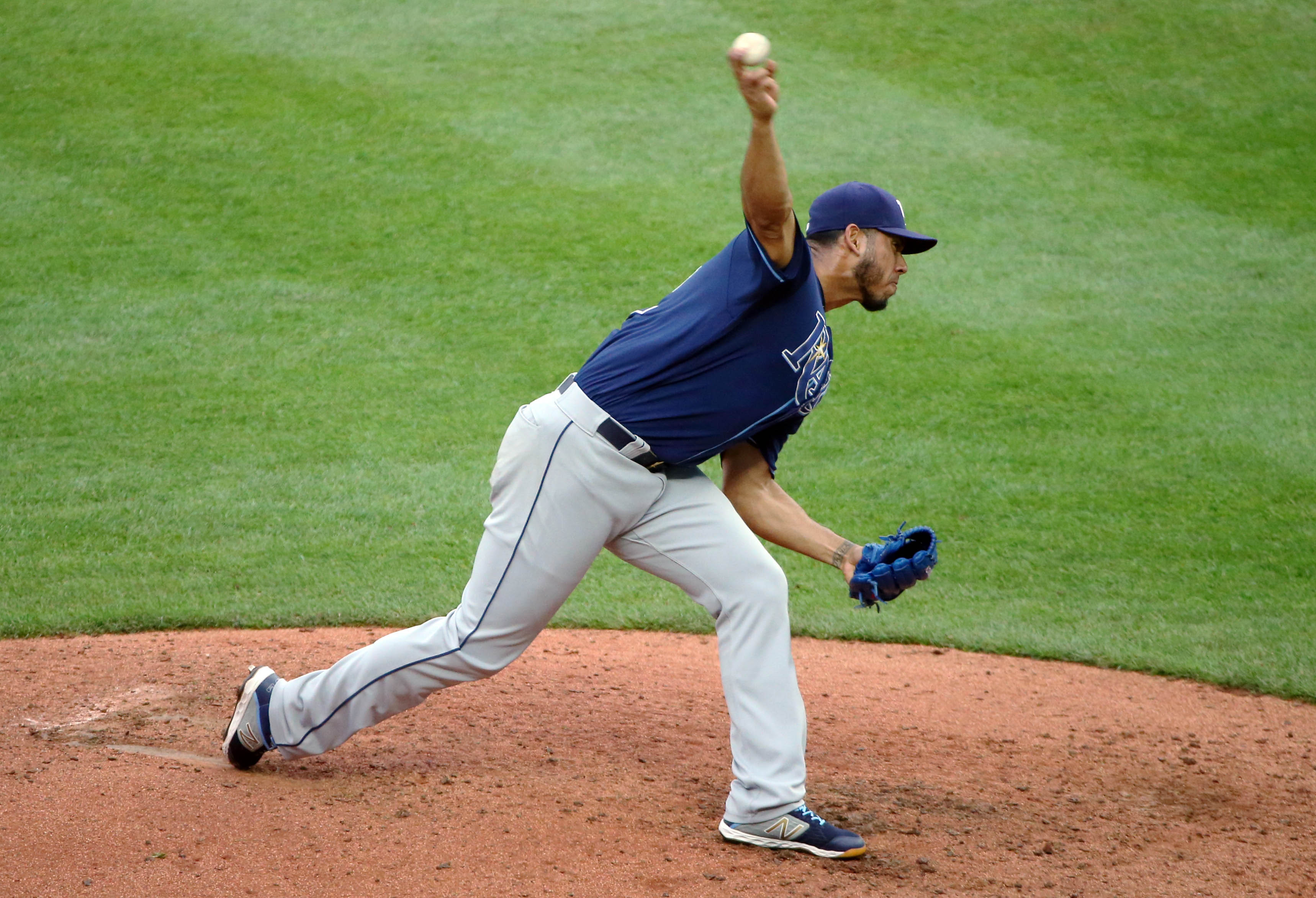 May 1, 2019; Kansas City, MO, USA; Tampa Bay Rays relief pitcher Wilmer Font (62) pitches against the Kansas City Royals during the fifth inning in the second game of a baseball doubleheader at Kauffman Stadium. Mandatory Credit: Jay Biggerstaff-USA TODAY Sports / Jay Biggerstaff