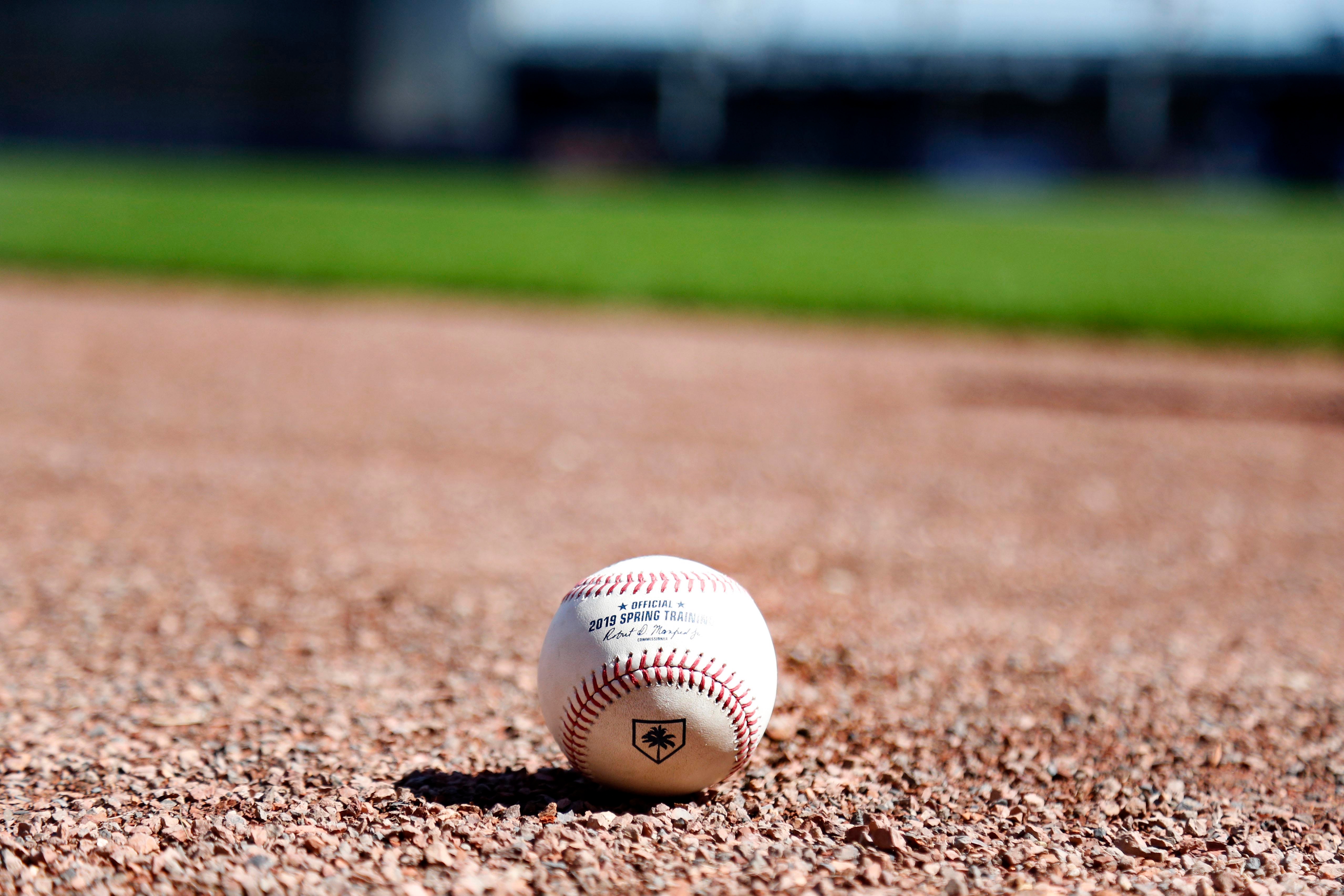 Feb 14, 2019; Tampa, FL, USA; A general view of a Spring Training baseball on the field during New York Yankees work outs at spring training at George M. Steinbrenner Field. Mandatory Credit: Kim Klement-USA TODAY Sports / Kim Klement