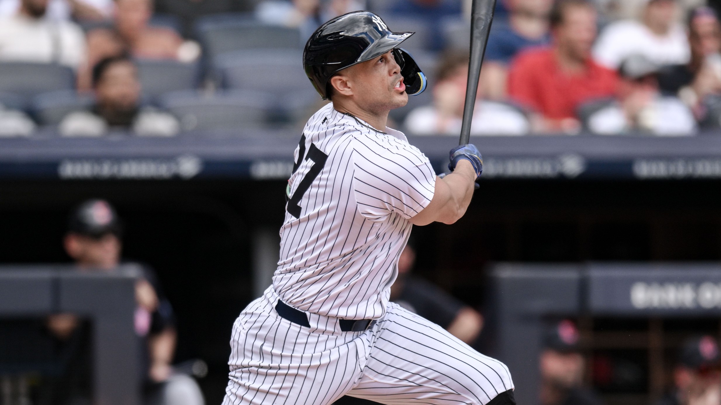 Giancarlo Stanton, Aaron Judge go yard as Yankees top Guardians, 6-0Judge's blast was his 48th of the season8/22/2024, 8:04 PMAlex SmithEditorial ProducerAug 22, 2024; Bronx, New York, USA; New York Yankees designated hitter Giancarlo Stanton (27) hits a three run home run against the Cleveland Guardians during the fifth inning at Yankee Stadium. / John Jones-USA TODAY Sports