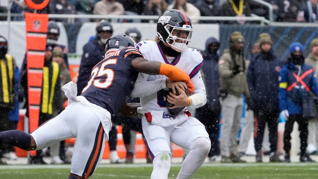 Giants let 10-point fourth quarter lead slip, fall to Bears 24-20 for another road lossJaxson Dart exited at start of fourth with a concussion11/9/2025, 9:14 PMBen KrimmelFreelance Editorial ProducerChicago Bears safety C.J. Gardner-Johnson (35) sacks New York Giants quarterback Jaxson Dart (6) during the first half at Soldier Field. / David Banks-Imagn Images