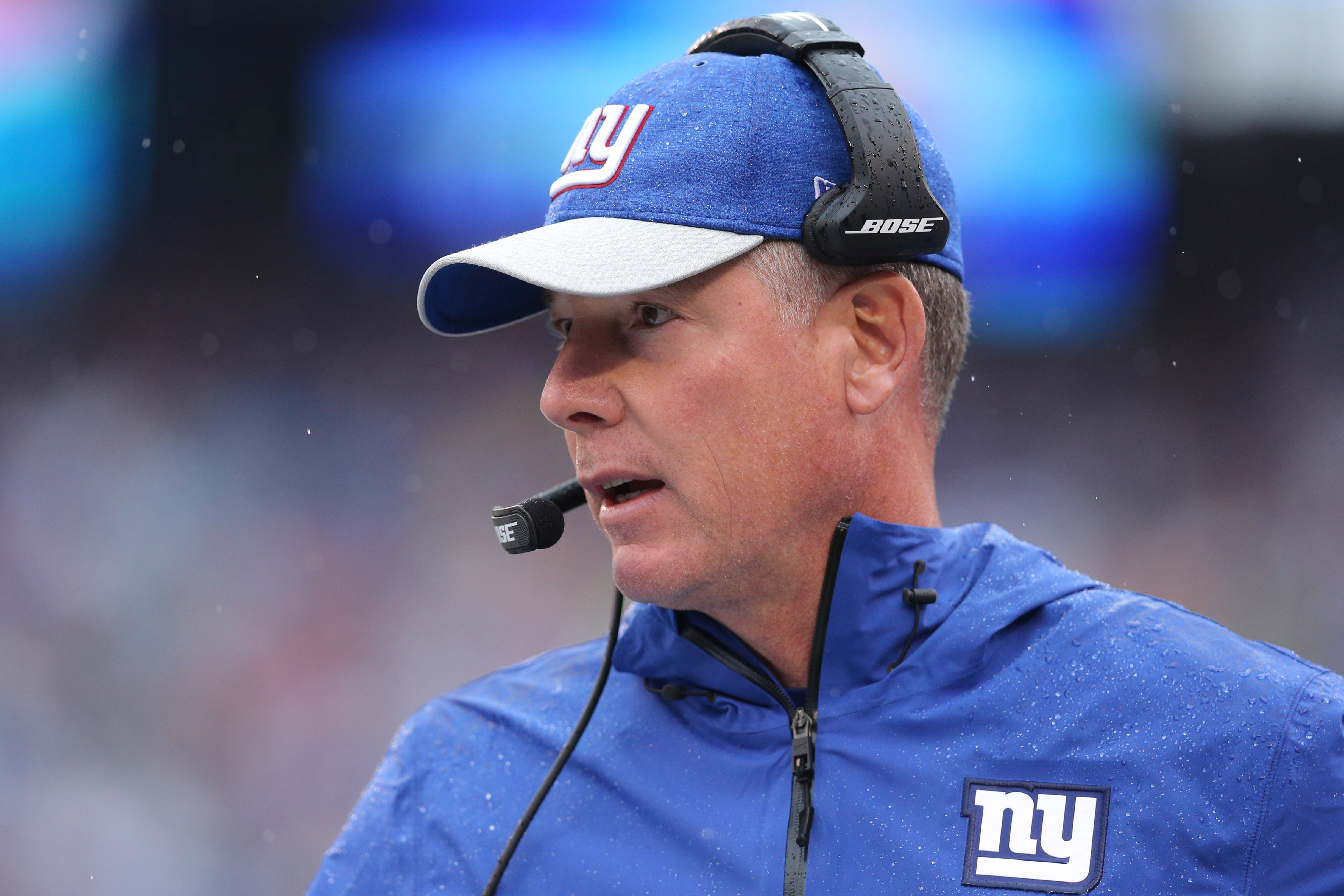Sep 9, 2018; East Rutherford, NJ, USA; New York Giants head coach Pat Shurmur coaches against the Jacksonville Jaguars during the first quarter at MetLife Stadium. Mandatory Credit: Brad Penner-USA TODAY Sports / Brad Penner