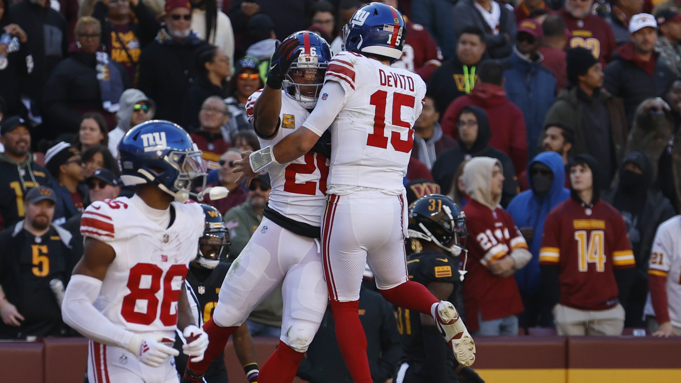 Giants takeaways from Sunday's 31-19 win over Commanders, including Saquon Barkley's big second halfNew York forced six Washington turnovers11/19/2023, 9:26 PMLucas HutchersonNFL freelance writer
